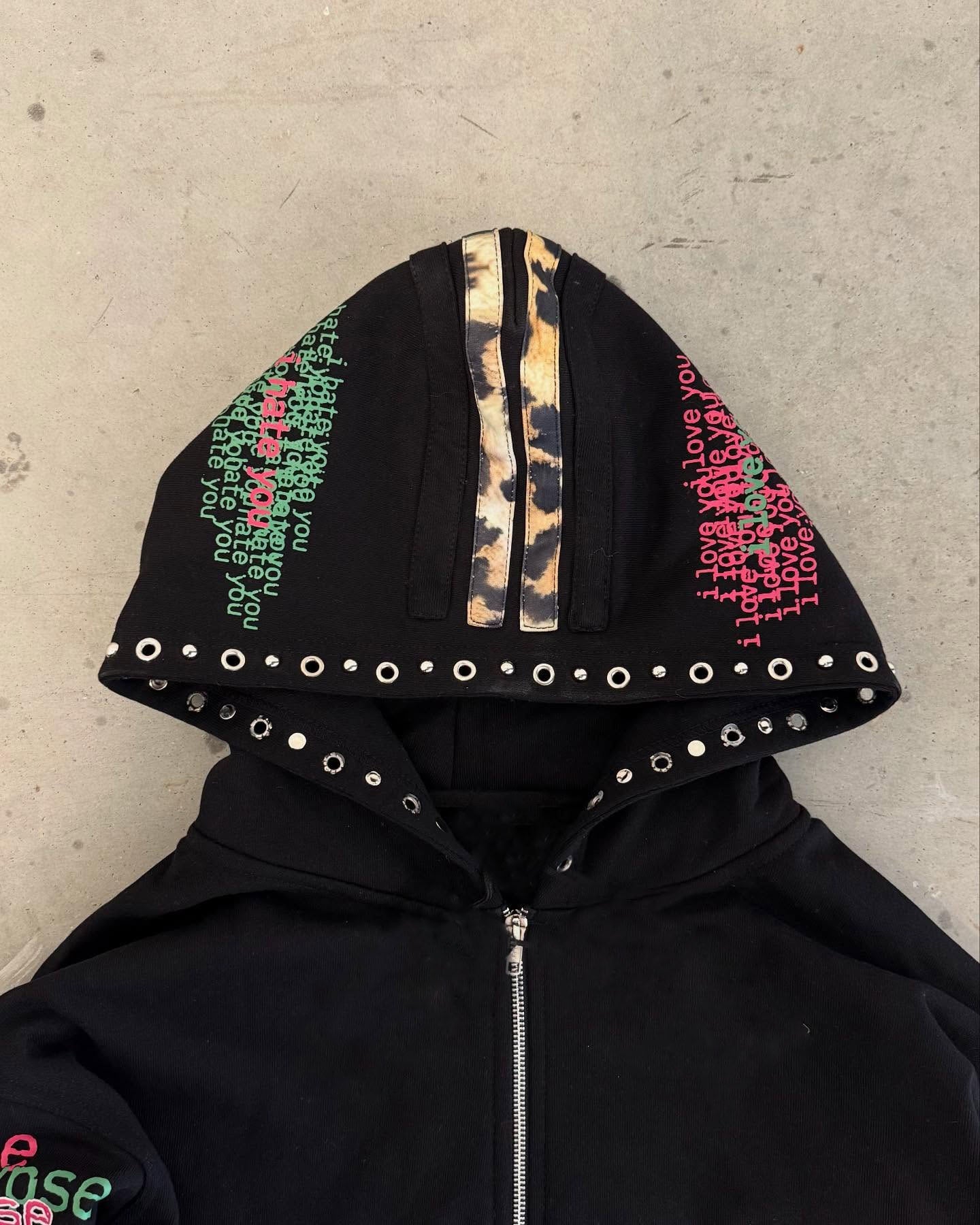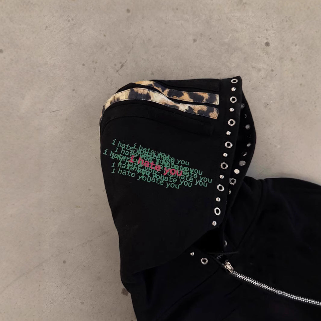 Y2K leopard print hip-hop hoodie.