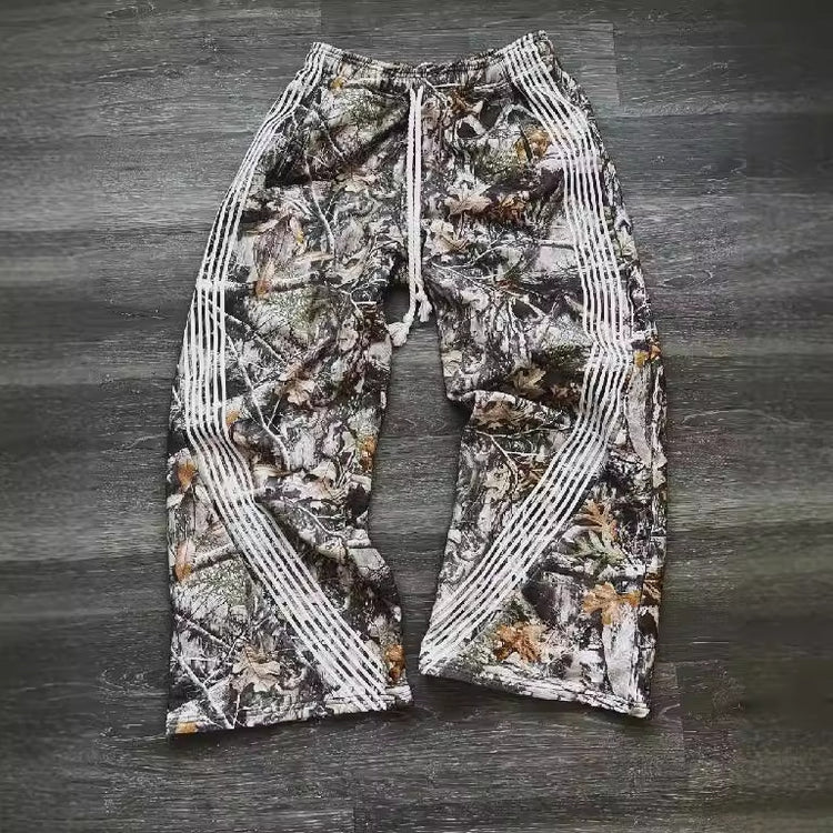 Y2K Branch Print Striped Pants
