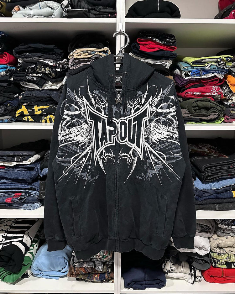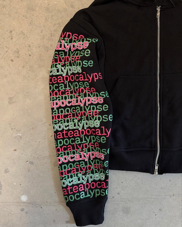 Y2K hip-hop star print black zip-up hoodie