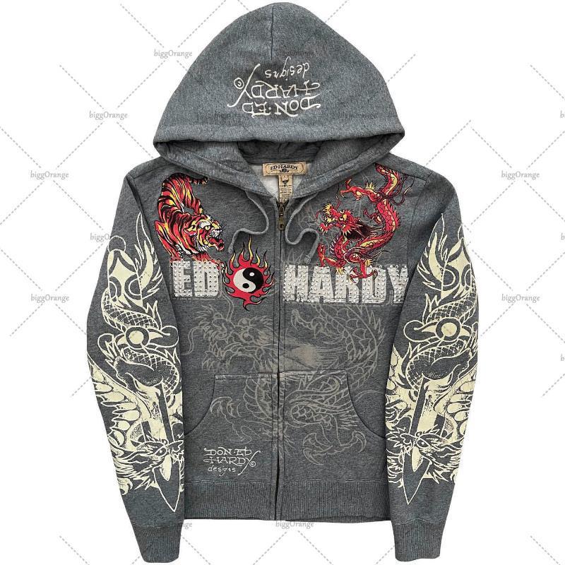 07 Dark style embroidered zip-up hooded sweatshirt