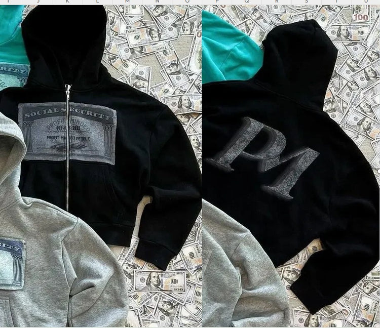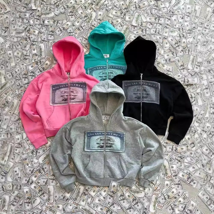 Social Security Money Graphic Zip Hoodie