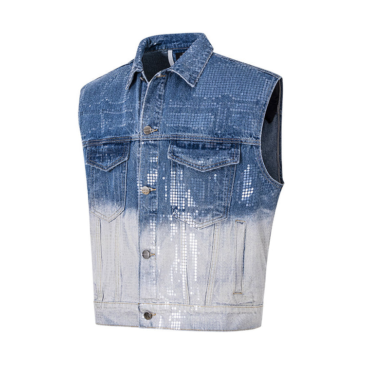 Denim Vest, Sleeveless, Gradient Color Vest