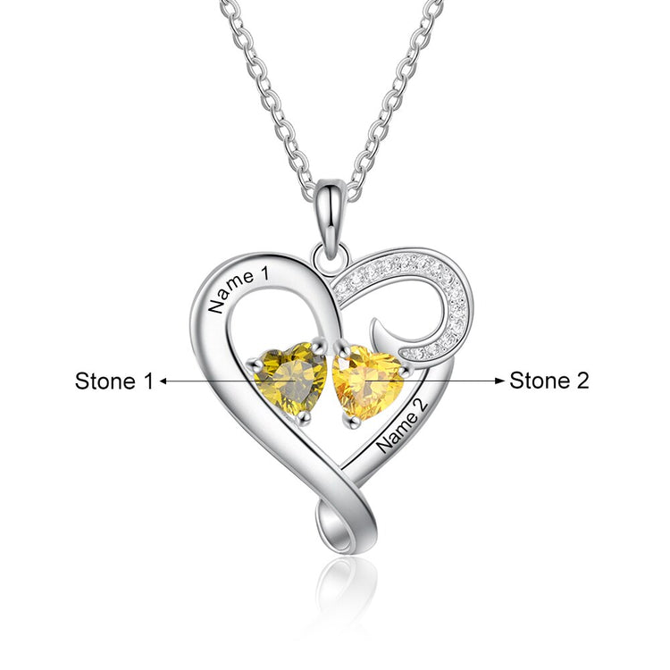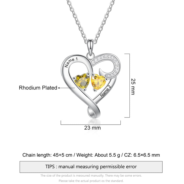 Customized 2 Birthstones Intertwined Heart Necklace Wedding Jewelry