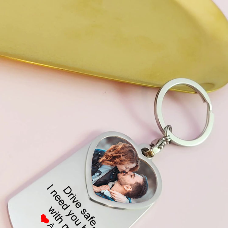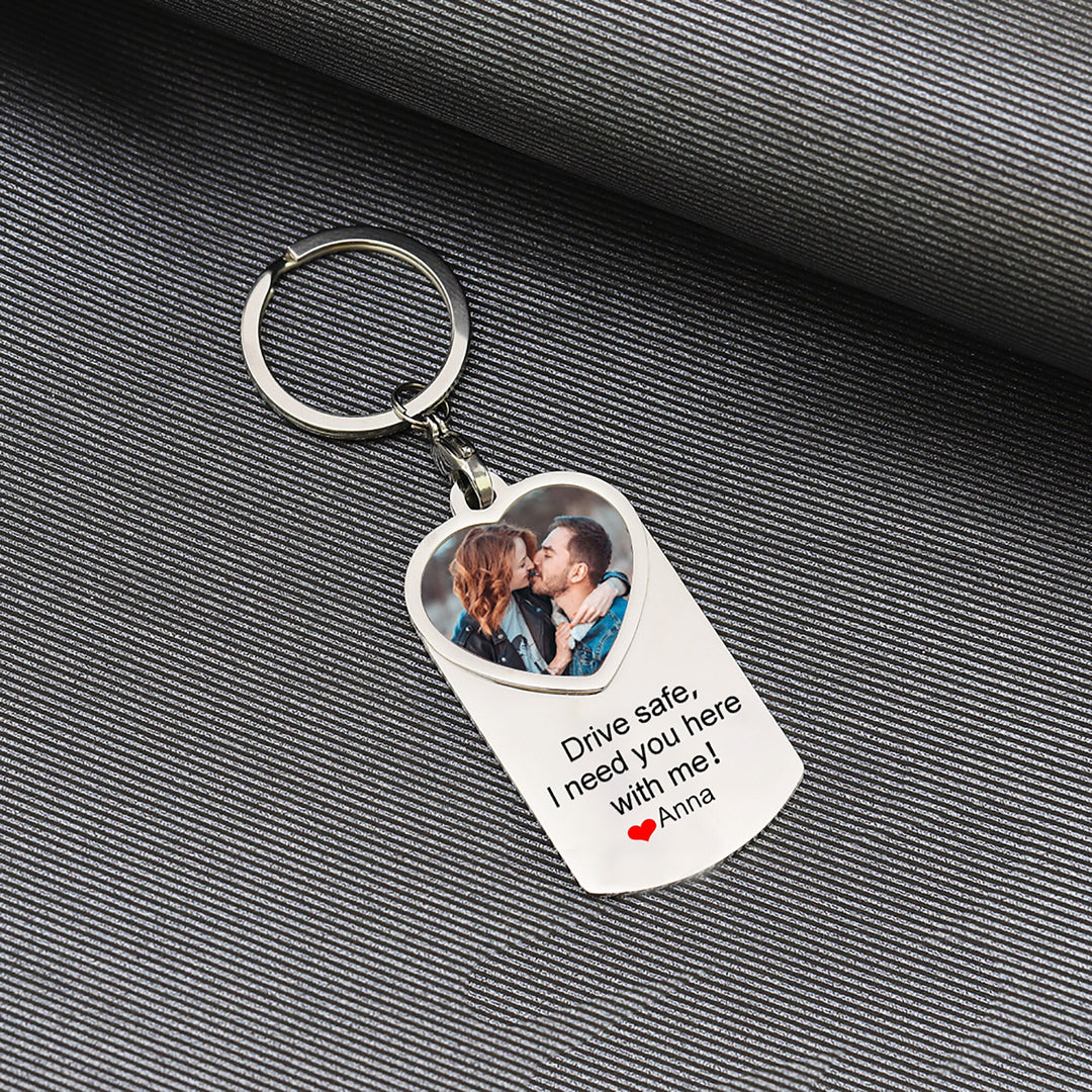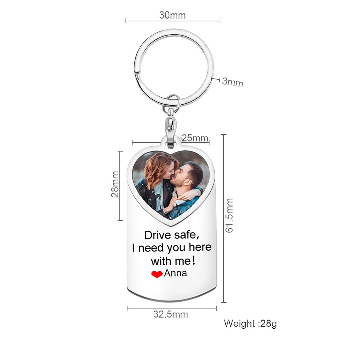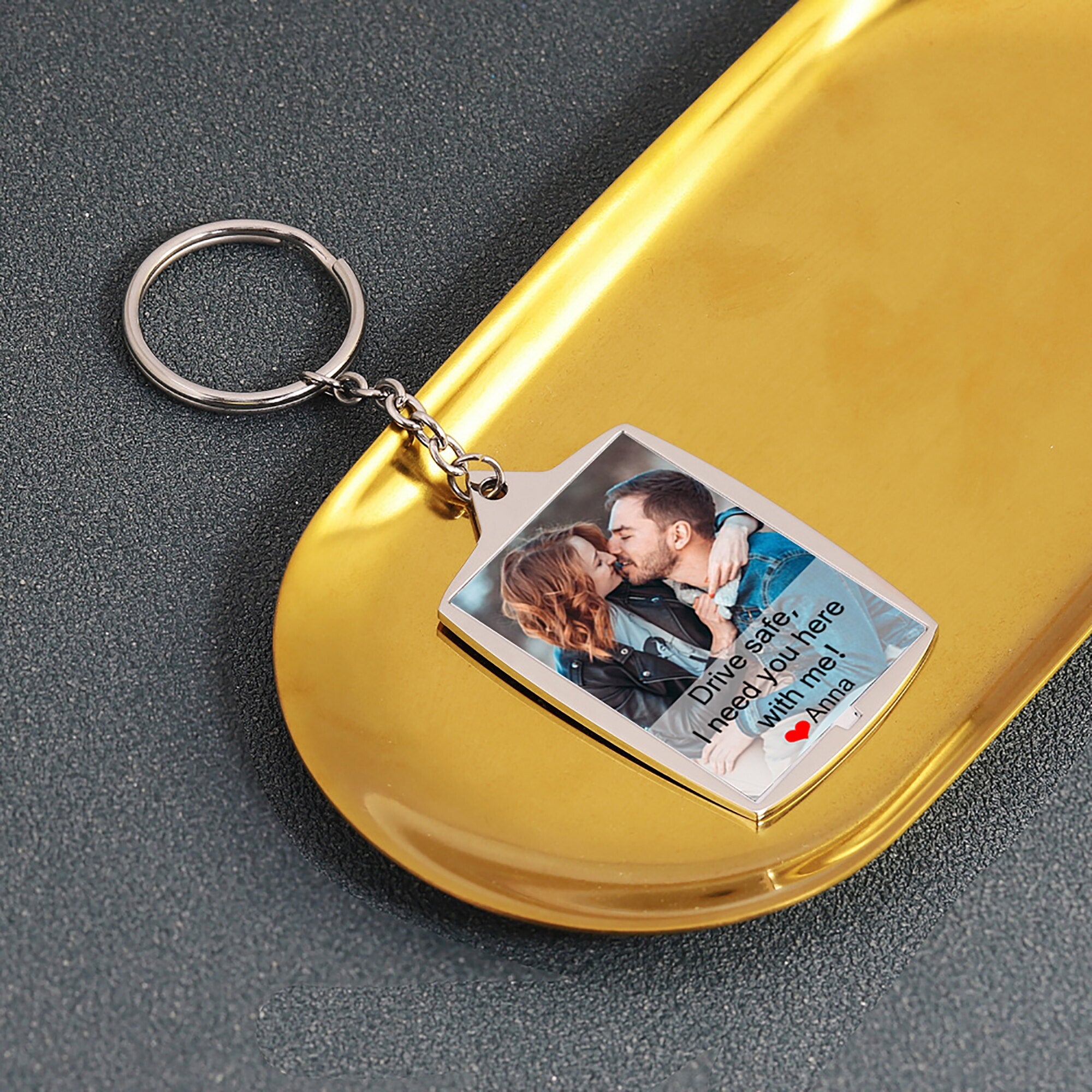 Stainless Steel Car Keyring Personalised Photo With Text Memory Gifts