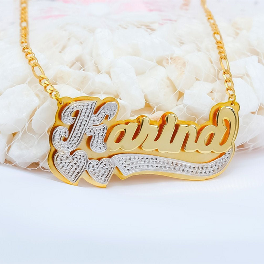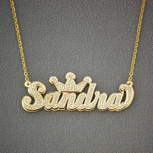 todayfashion Kundenspezifische Namenskette Doppelt 18 Karat vergoldetes Namensschild 3D-Halskette Personalisierter Choker