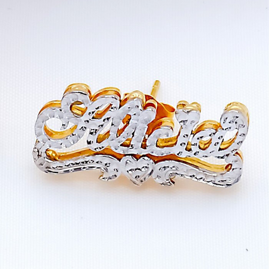 Personalisierter Namensohrring für Frauen-Edelstahl-kundenspezifischer Goldtypenschild-Bolzen-Ohrring