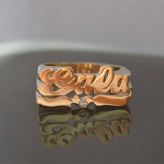 Personalisierte geschnitzte Namensringe Initialenring Namensringe Personalisierte 18 Karat vergoldete Ringe