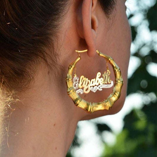 Benutzerdefinierte Bambus Creolen Personalisierte Namen Ohrring Bambus Stil benutzerdefinierte Ohrringe