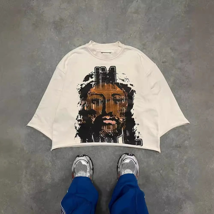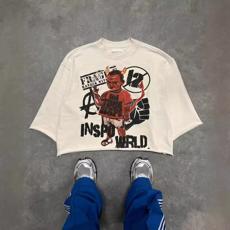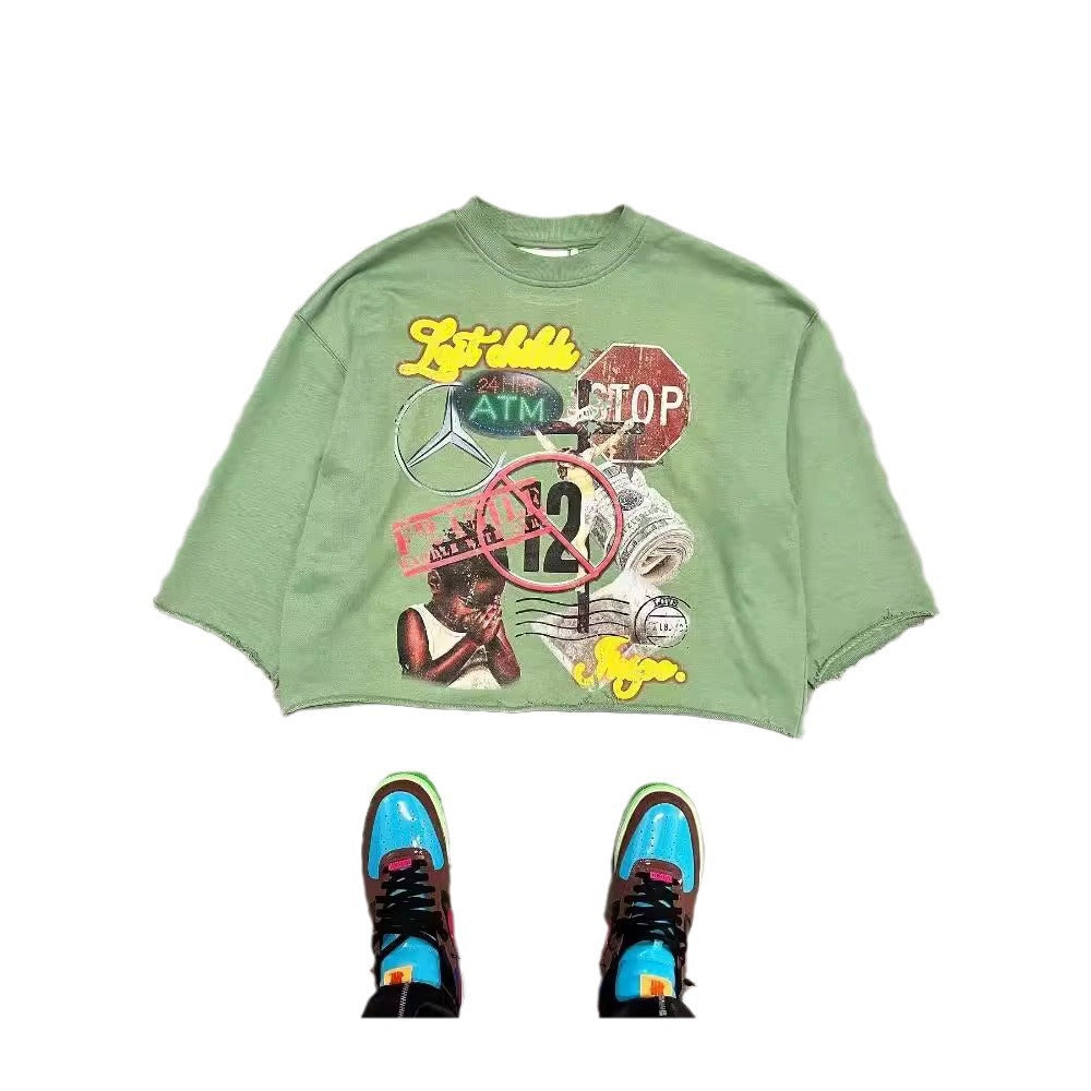 Graffiti print trendy T-shirt, three-quarter sleeve top