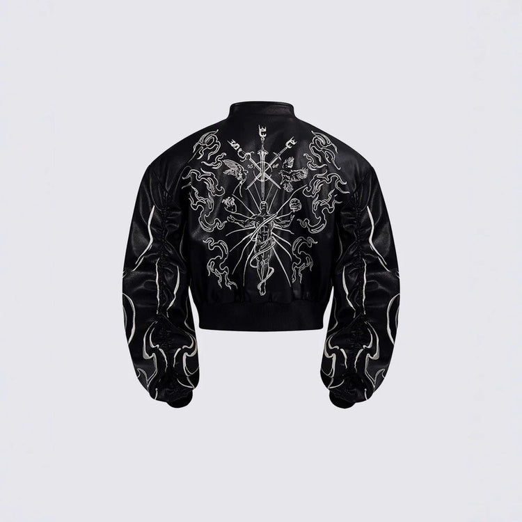 Gothic embroidered motorcycle leather jacket