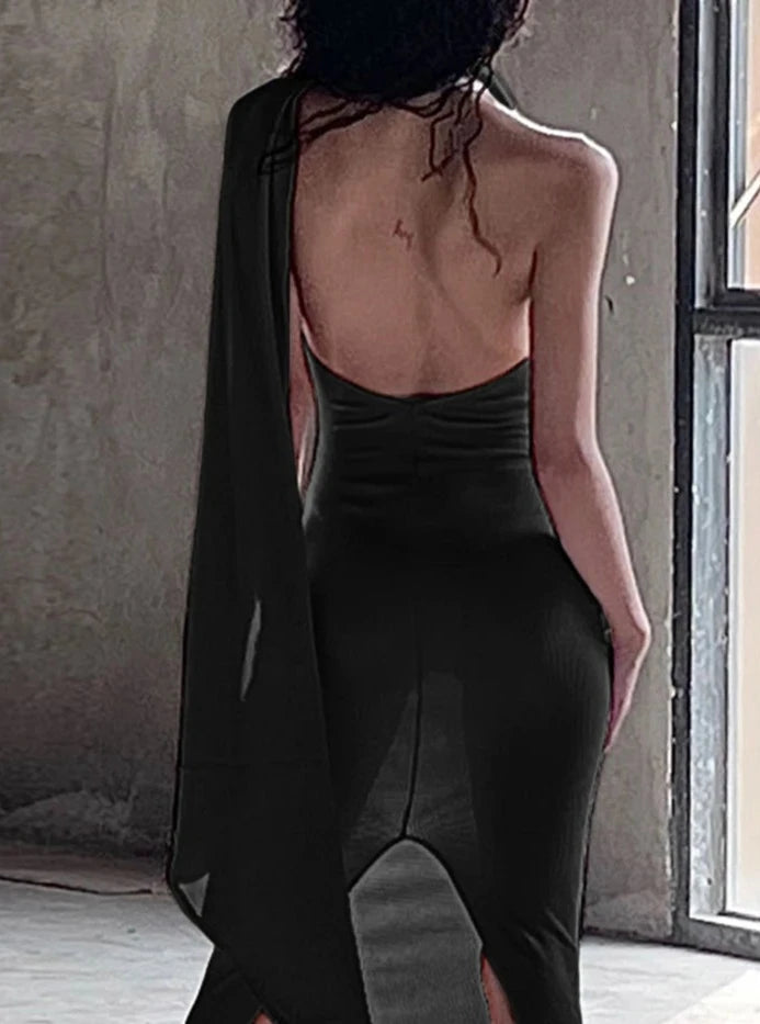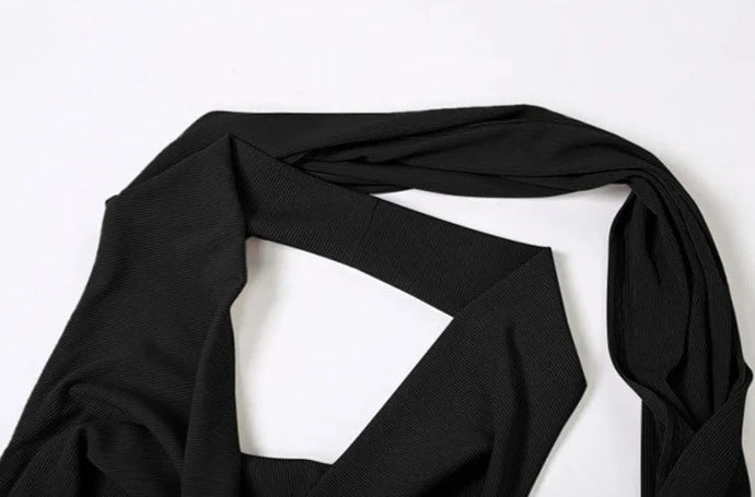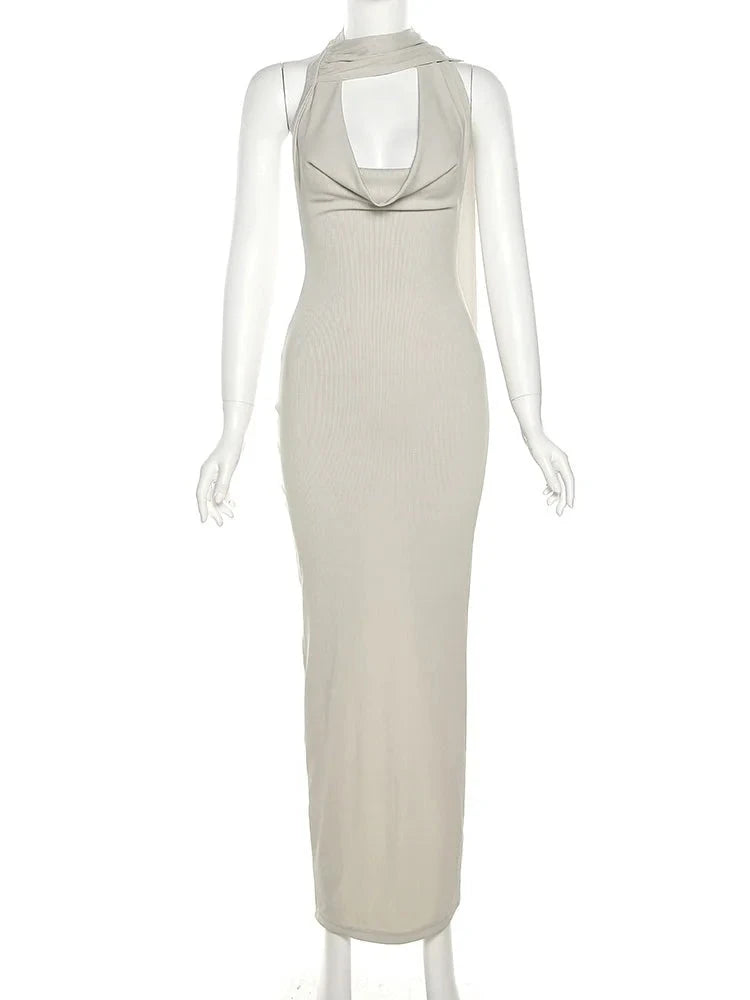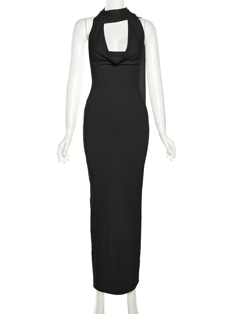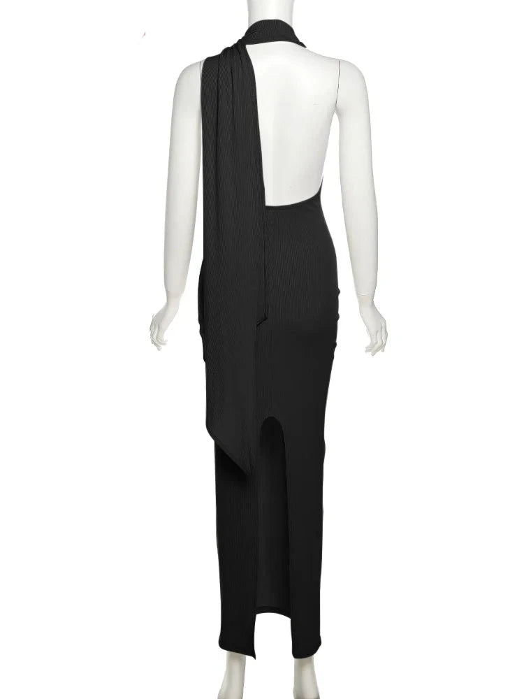 Backless Halter Evening Dress With Scarf Hollow Back Split Skinny