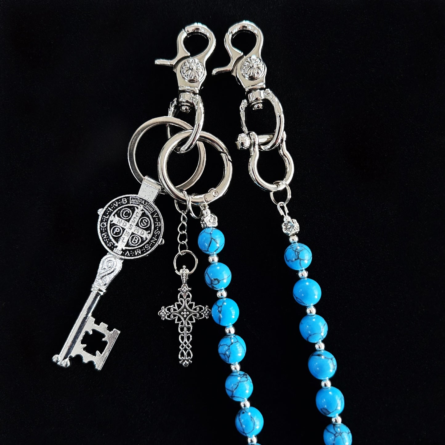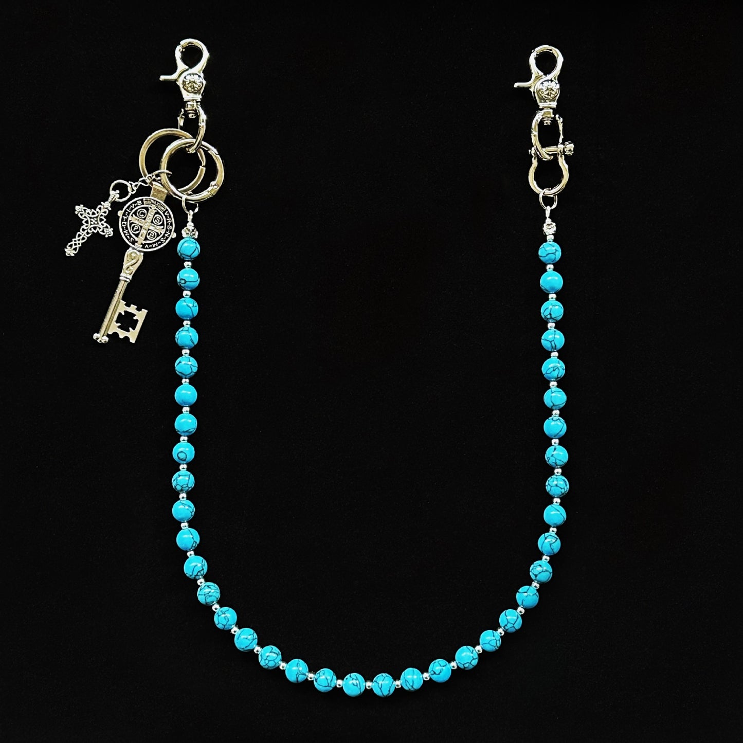 Color: Blue cracked stone round pants chain