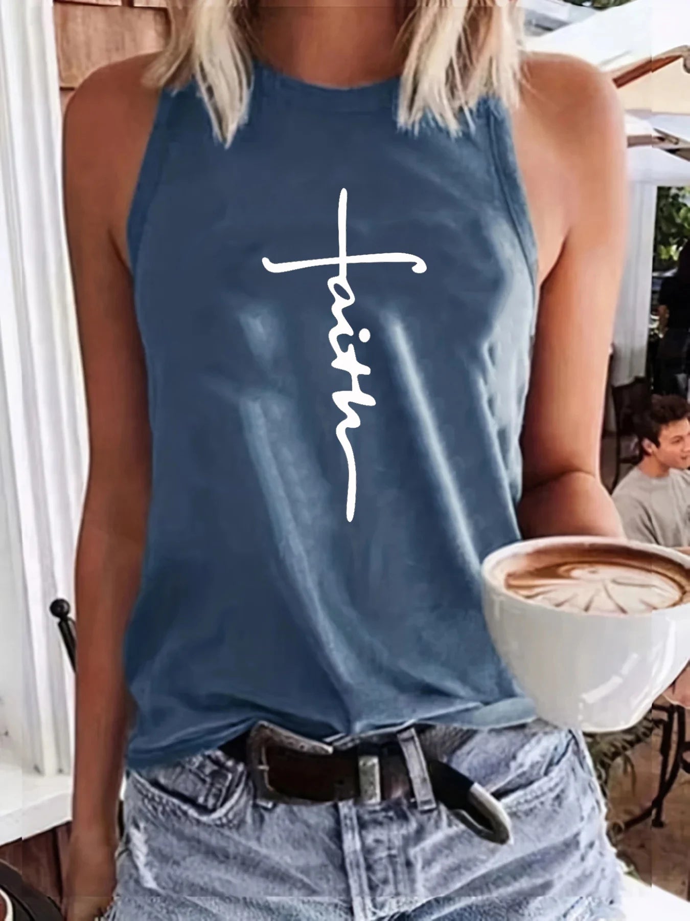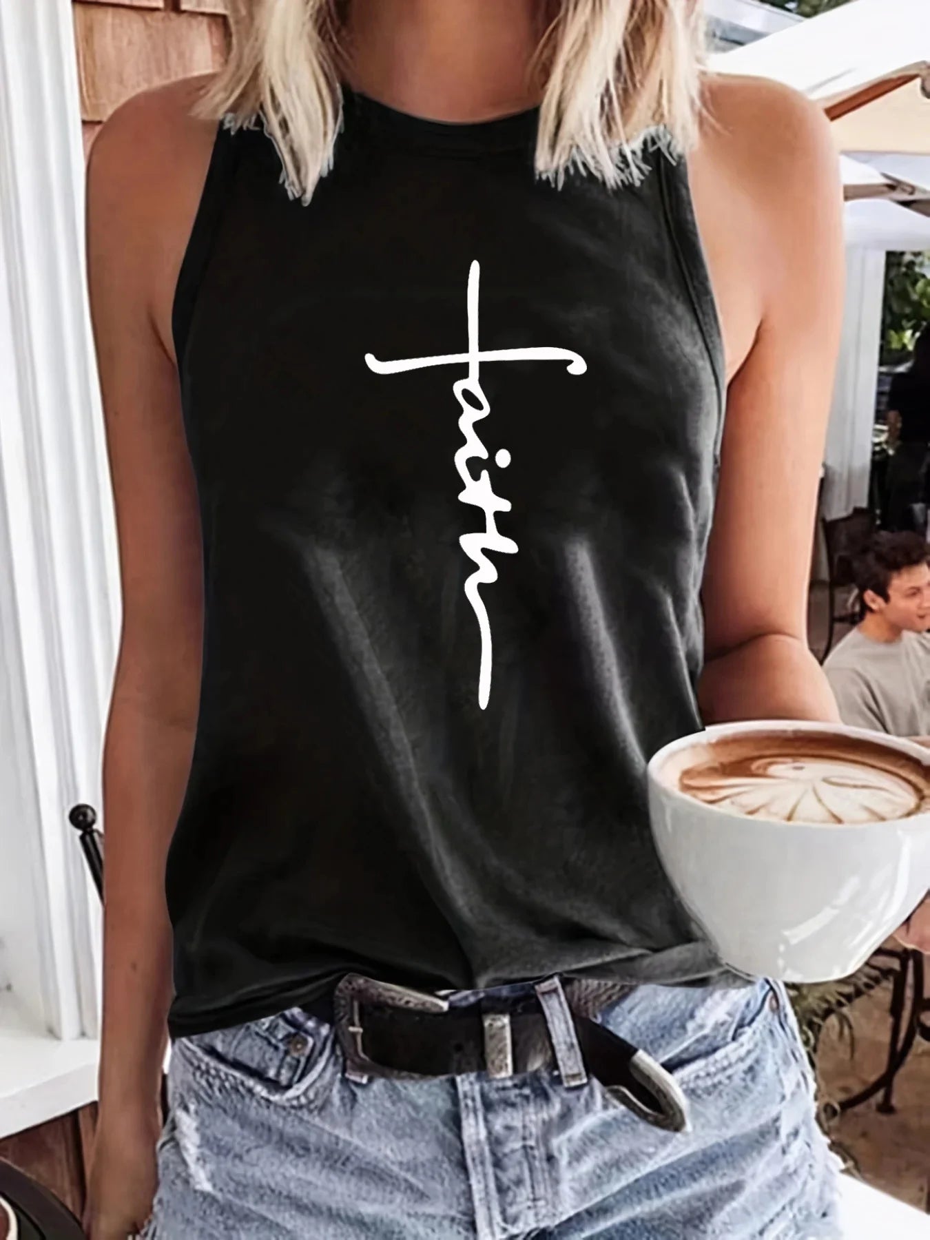 cross faith Print Large Sleeveless Loose Tank Top T-shirt