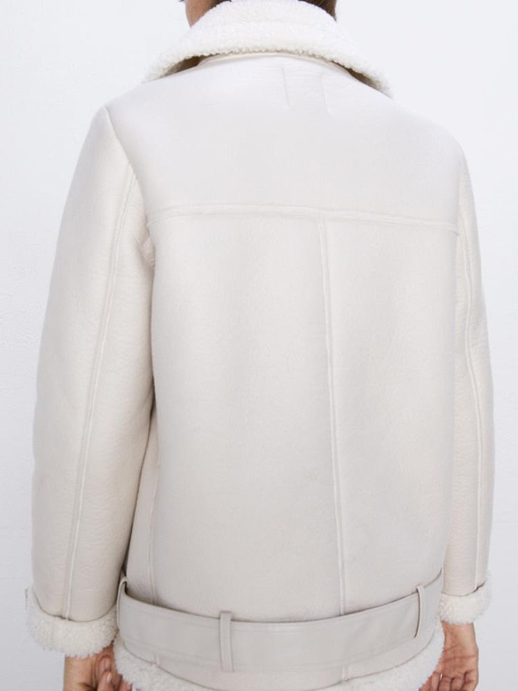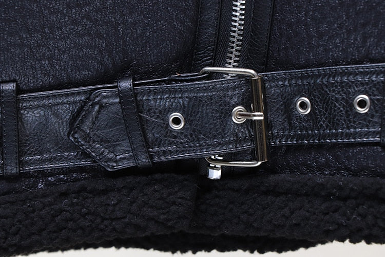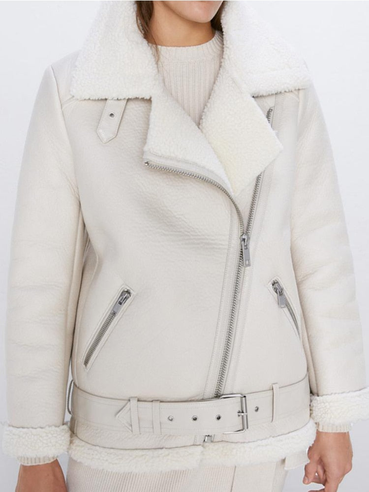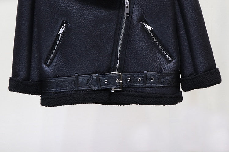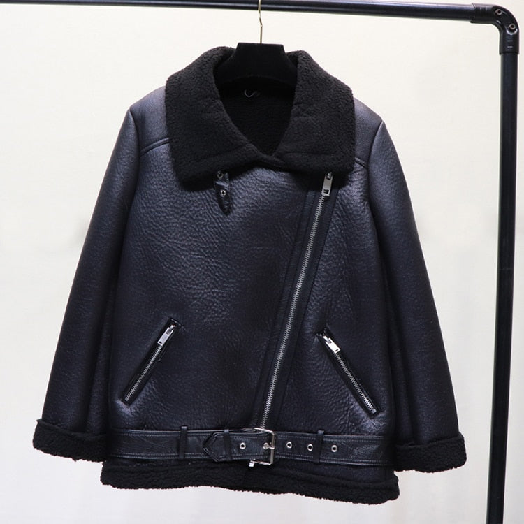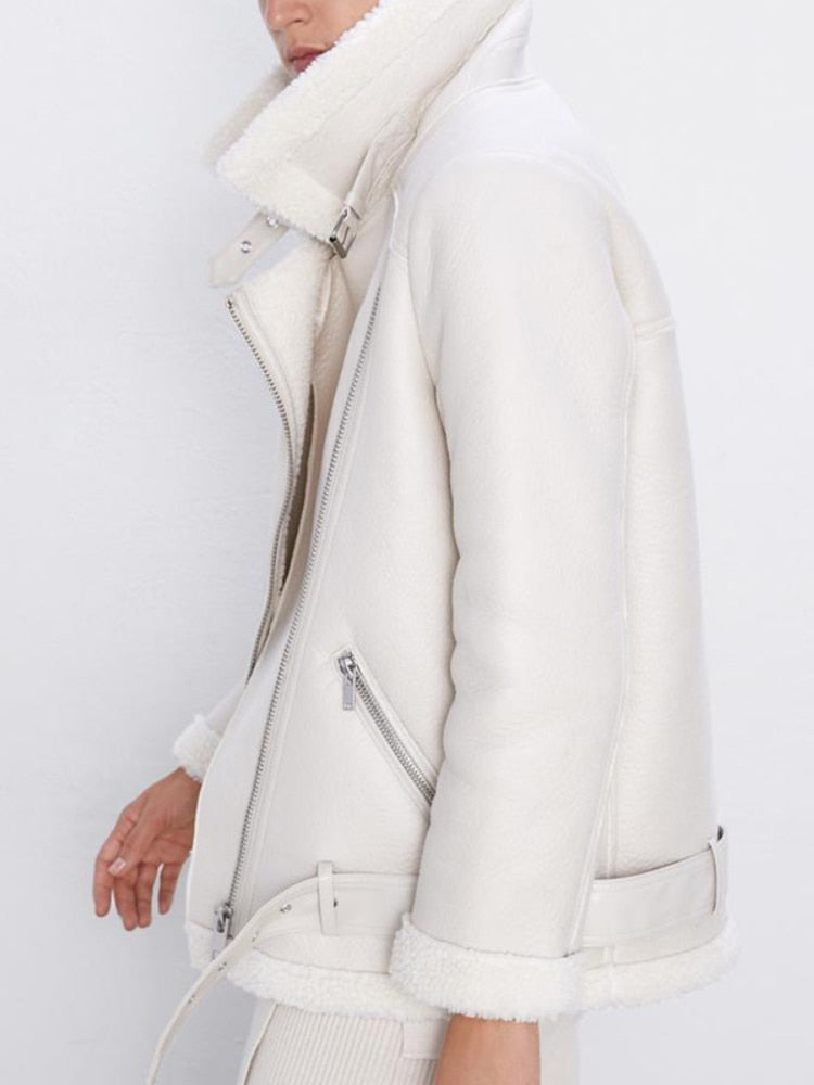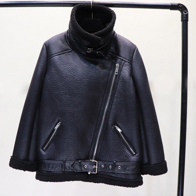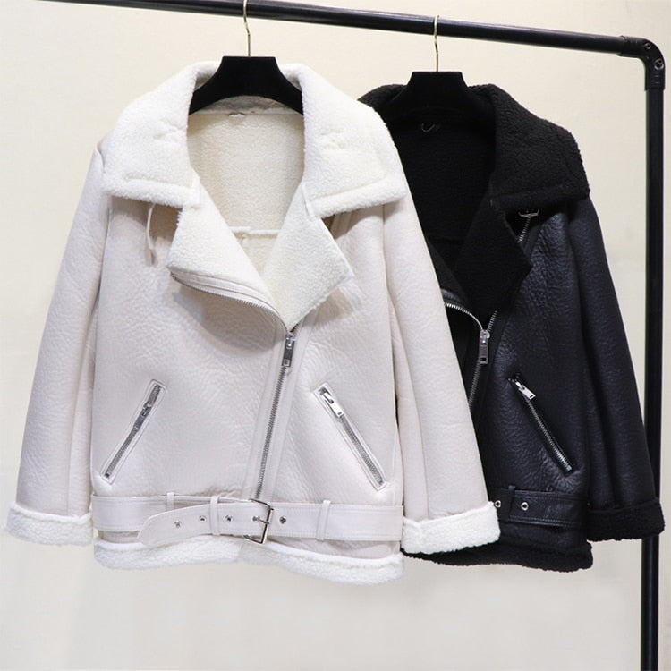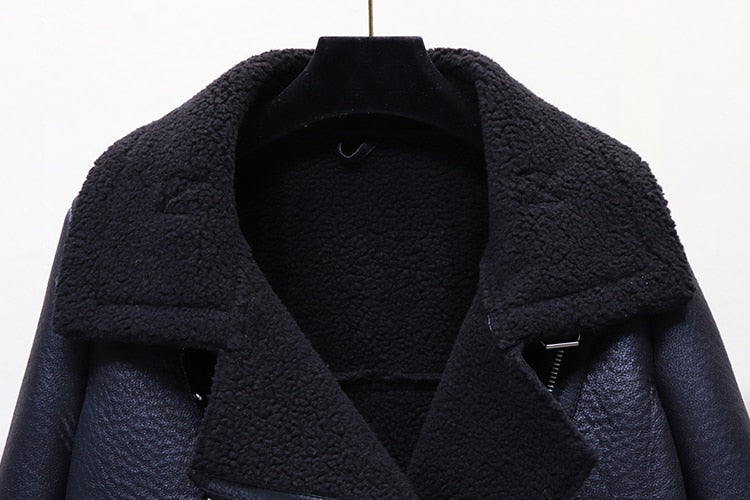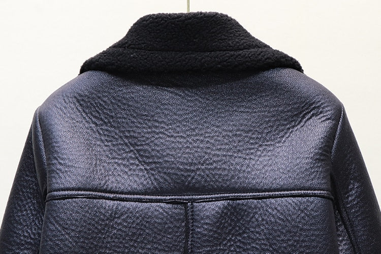 Faux Lammlederjacke Pu Moto Reißverschlussjacke Warme dicke Oberbekleidung