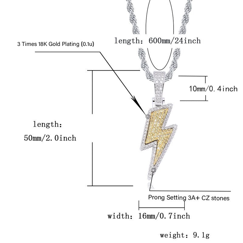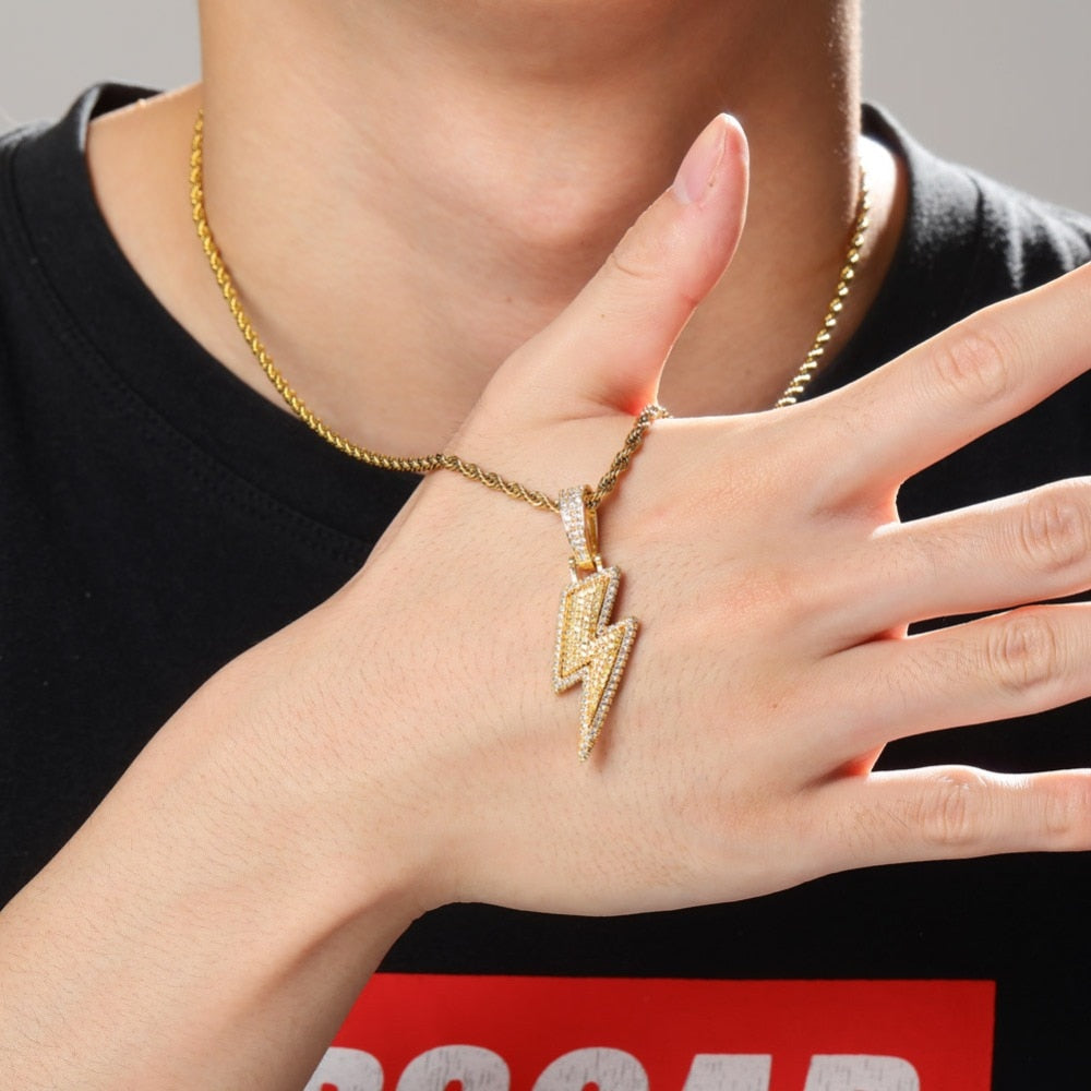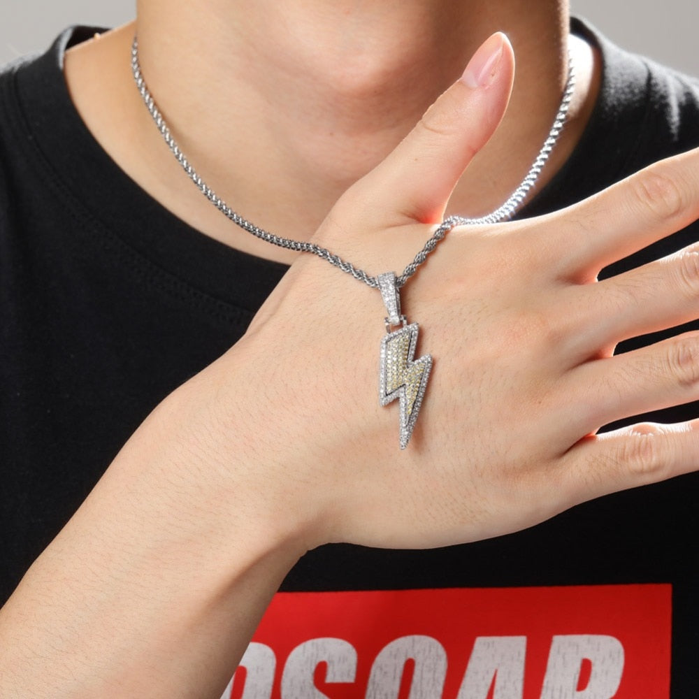 Iced Out Bling Lightning Anhänger mit Tenniskette Kupfer Material Herren Hip Hop Schmuck Geschenk