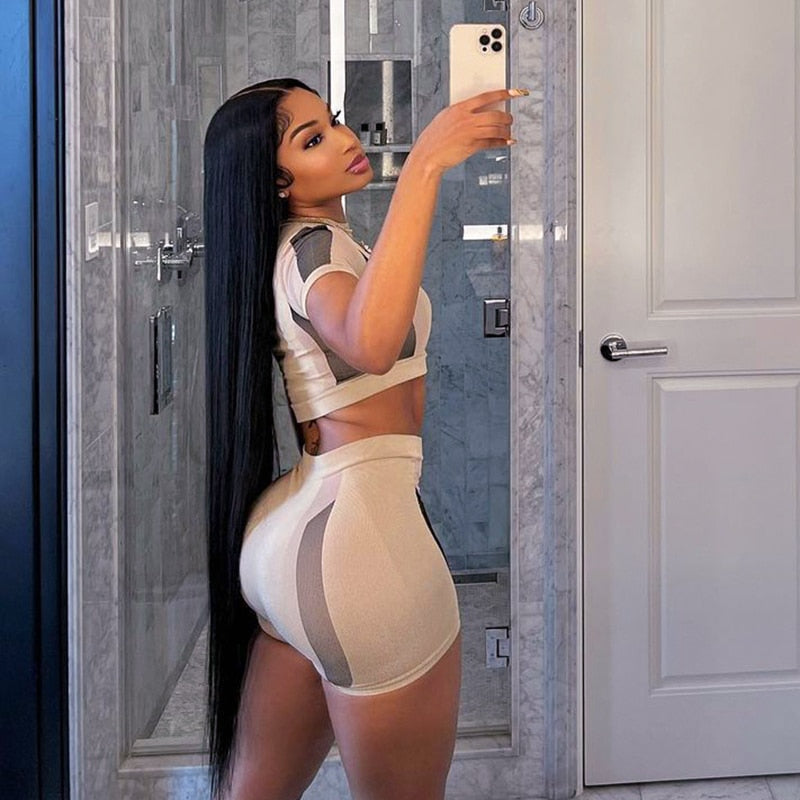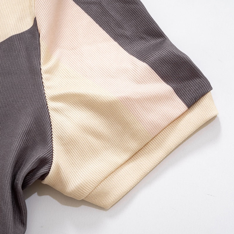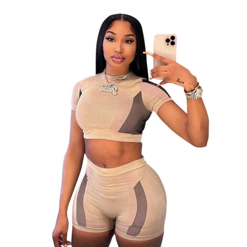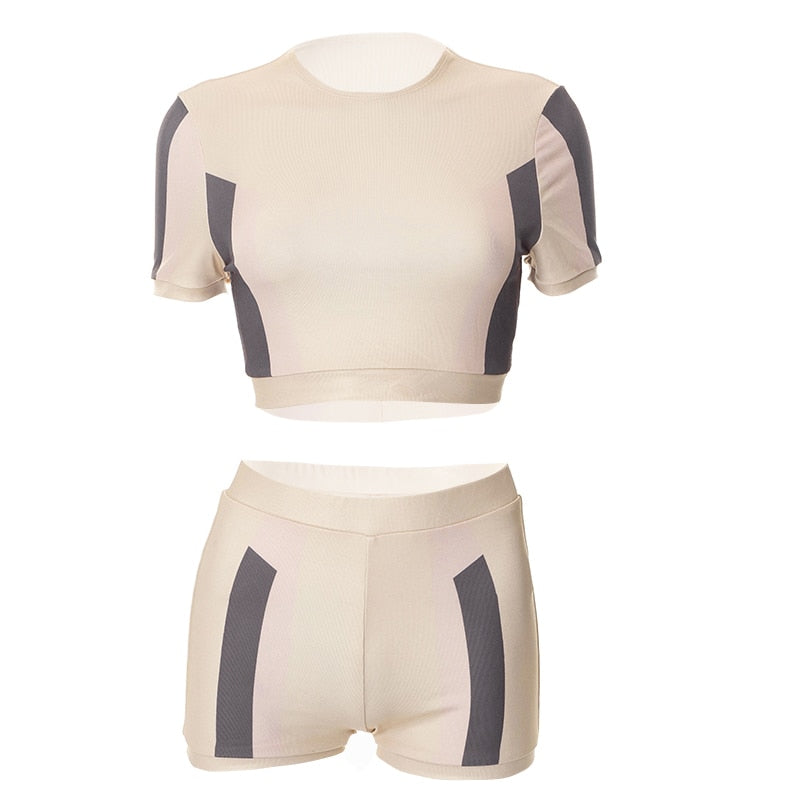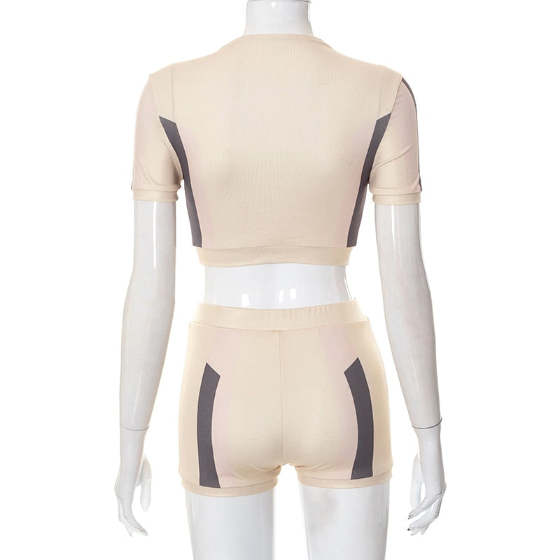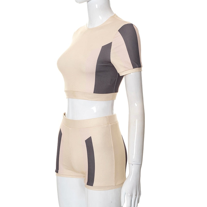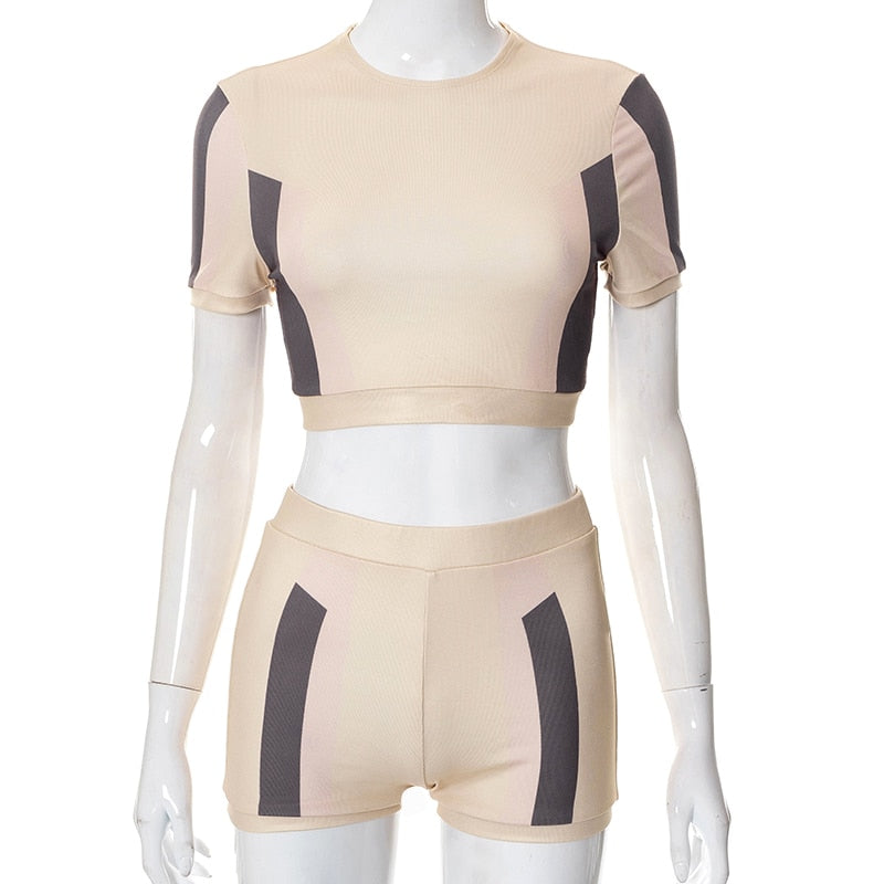 O-Ausschnitt mit kurzen Ärmeln Patchwork Sexy Crop T-Shirt Shorts 2-teiliges Set