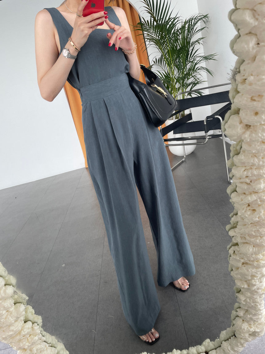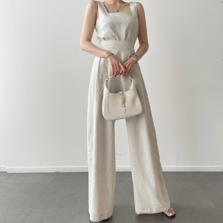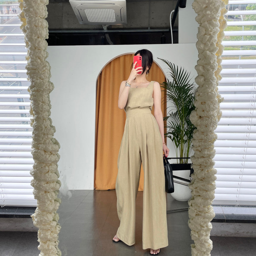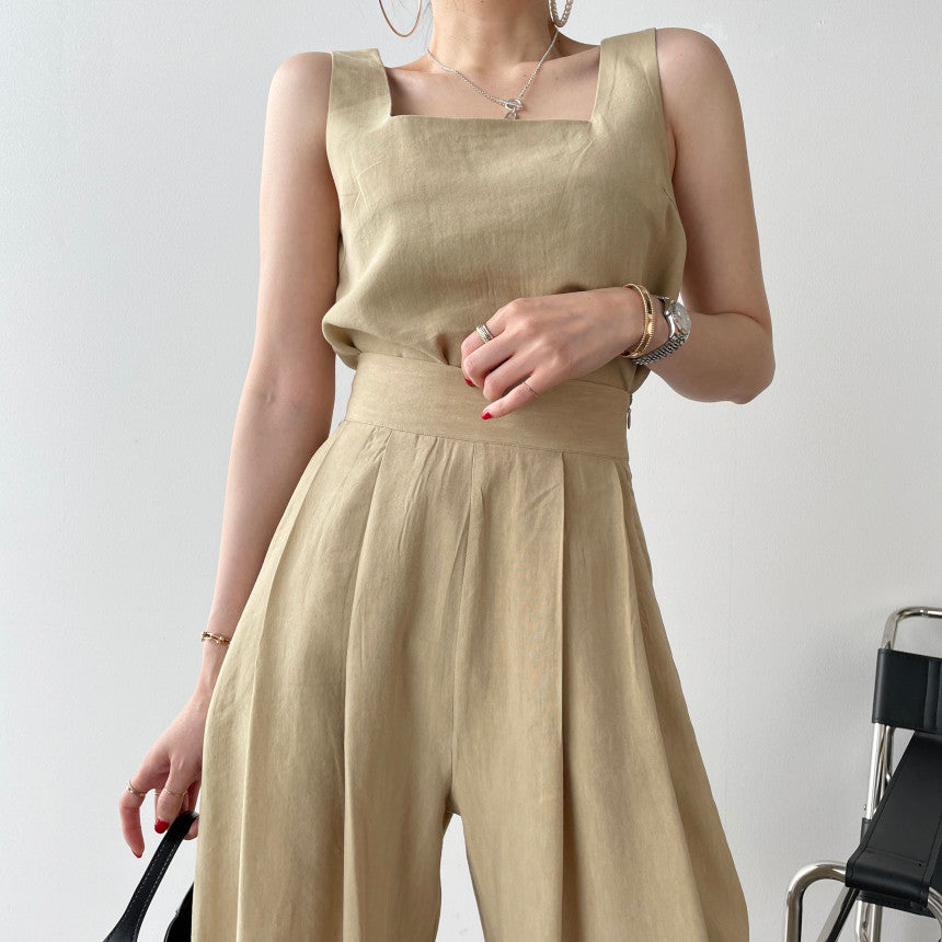 Bürodamen 2-teiliges Damen-Oberteil mit eckigem Ausschnitt und lockerer Weste + plissierte Hose mit weitem Bein und hoher Taille