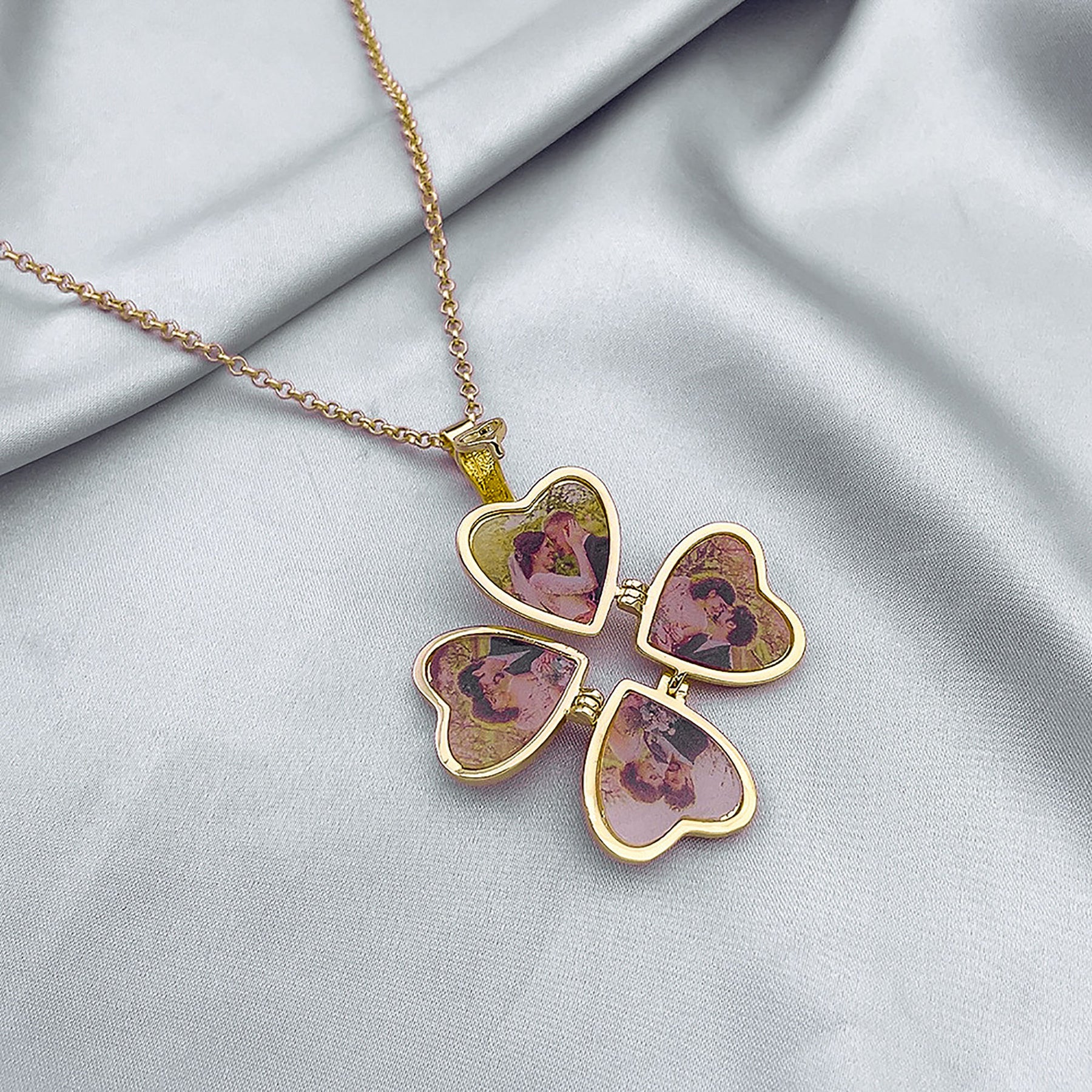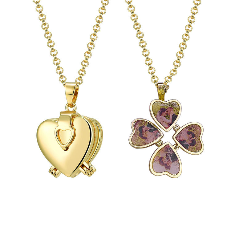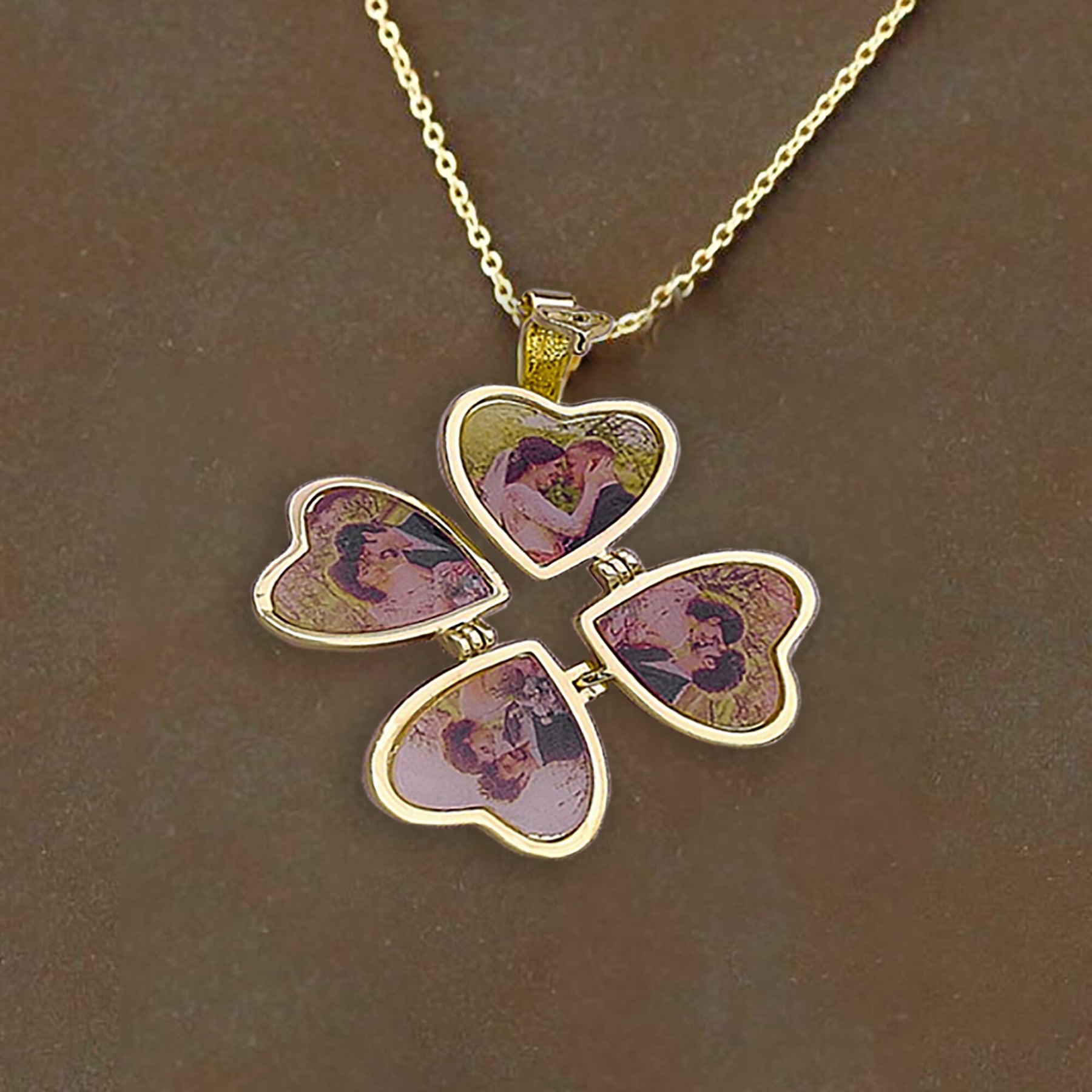 Personalisierte Liebe Herz Medaillon Halskette Custom 4 Fotos verstellbarer Anhänger