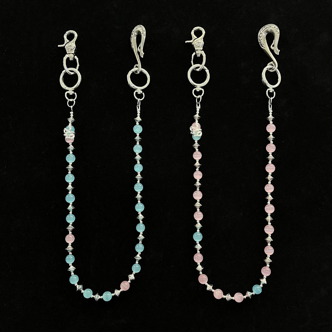 red and blue cat's eye stone chain