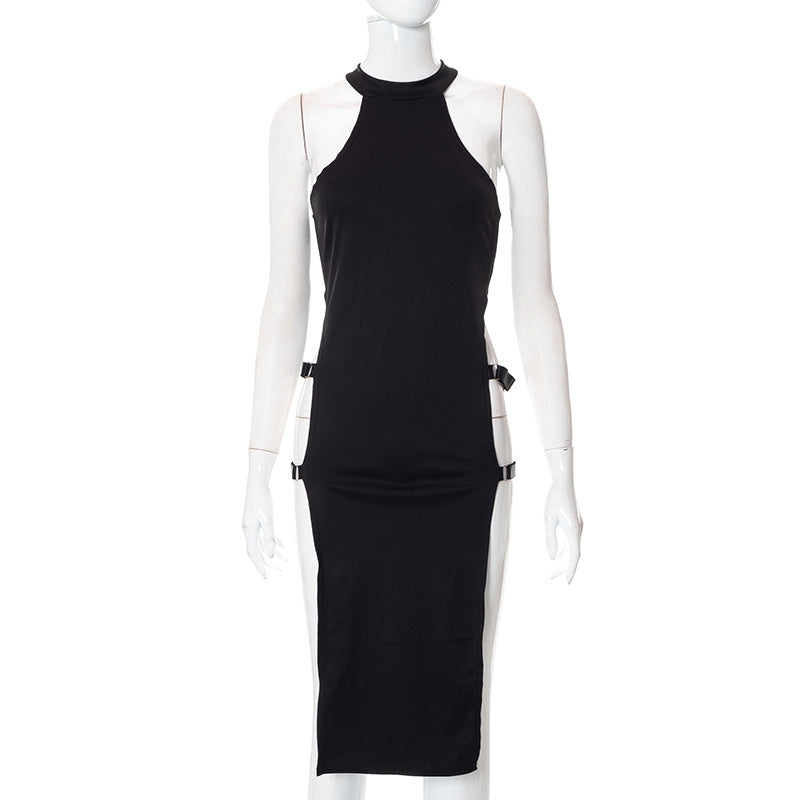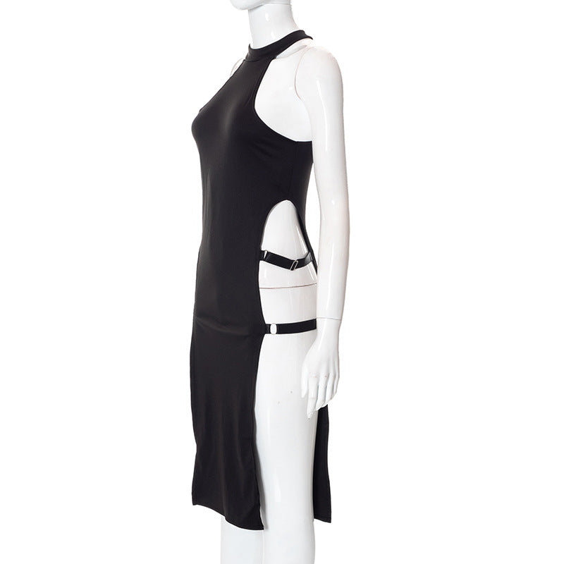 Ärmelloses Damenkleid mit hohlem Seitenschlitz und hoher Taille