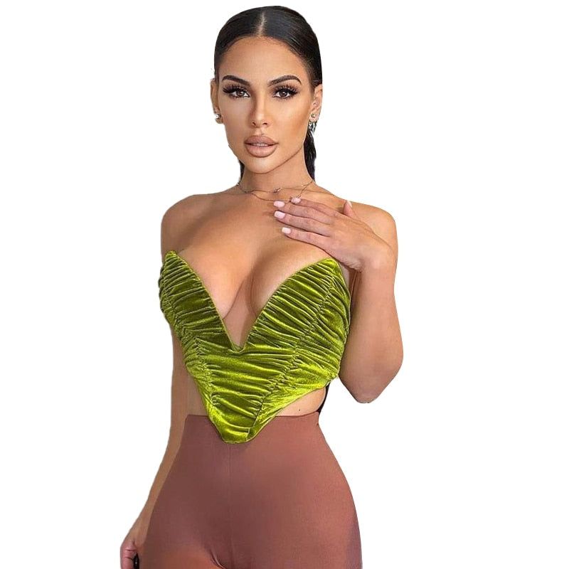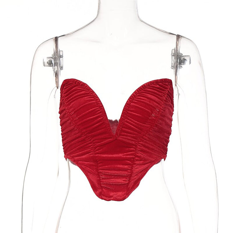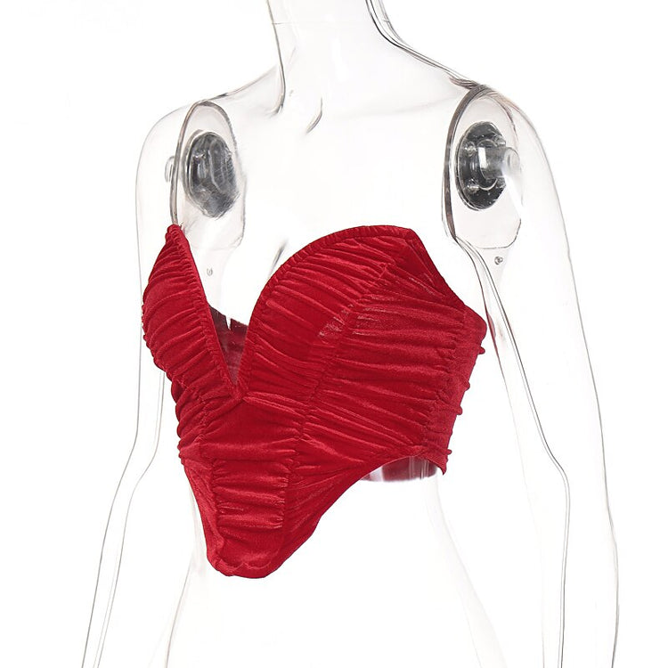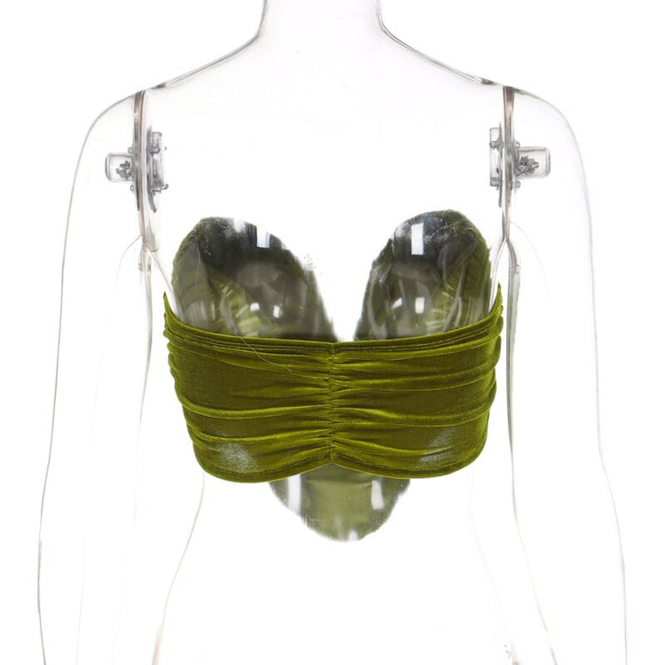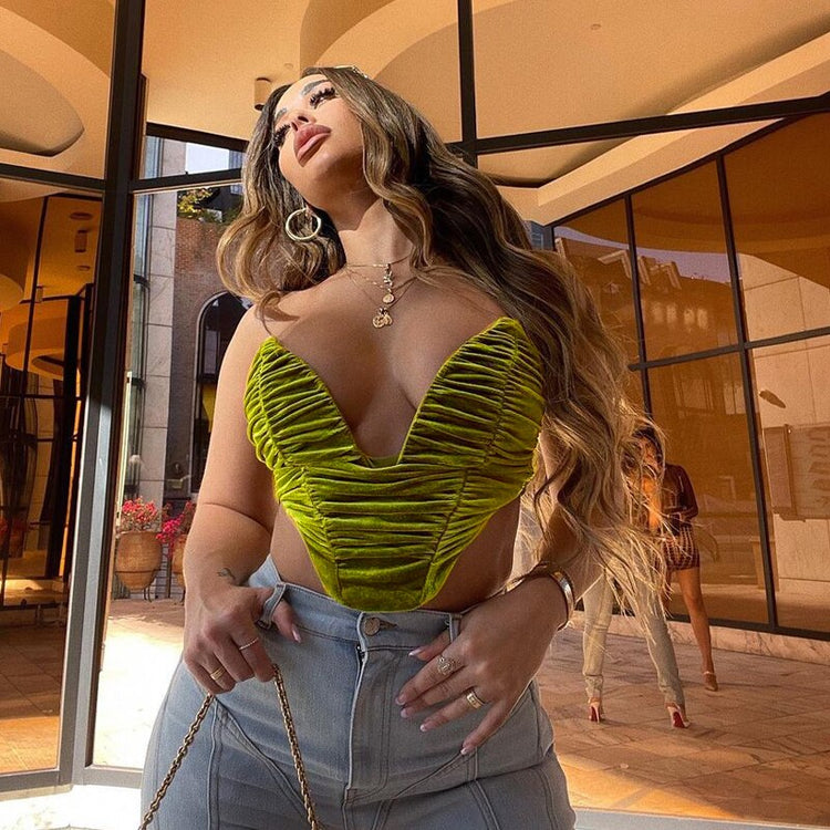 Ärmelloses, rückenfreies, drapiertes Crop-Top mit Slash-Ausschnitt, solides, elegantes Streetwear-Shirt