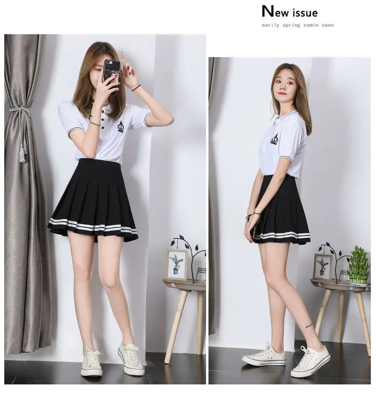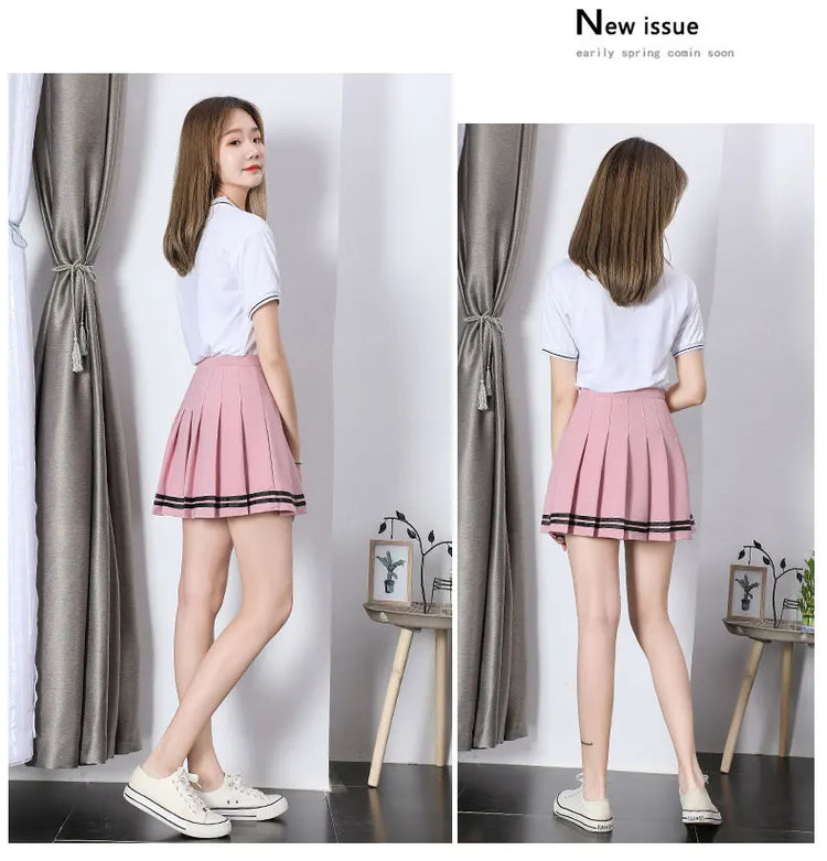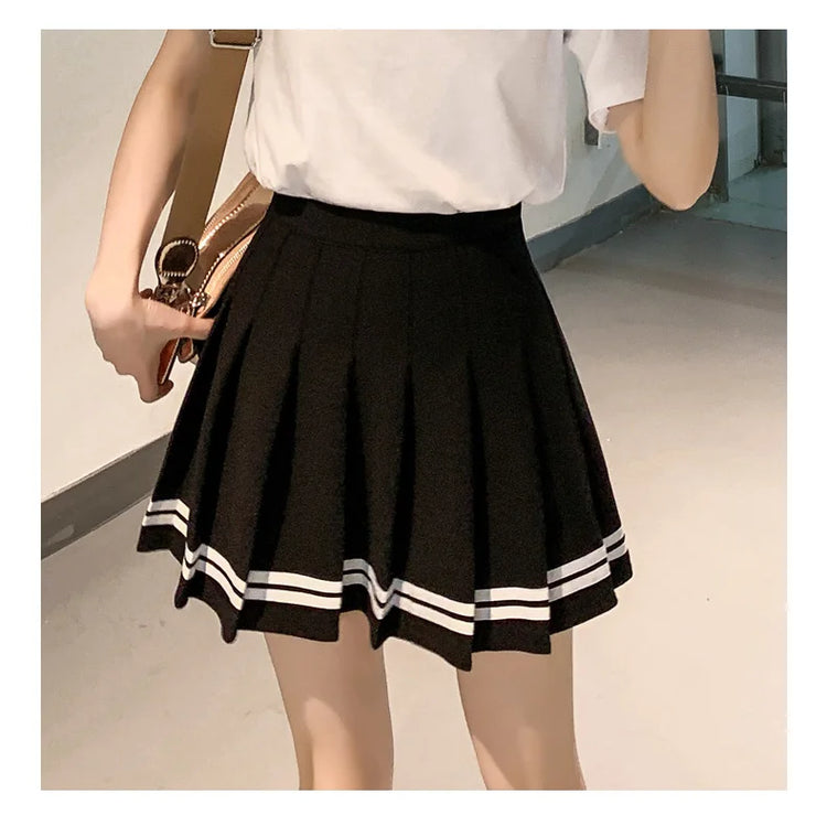Striped Pleated Elastic Waist Female Sweet Mini Dance Plaid Skirt Y2k