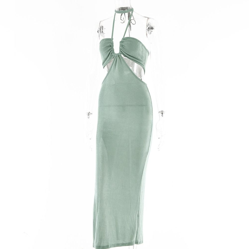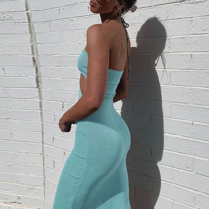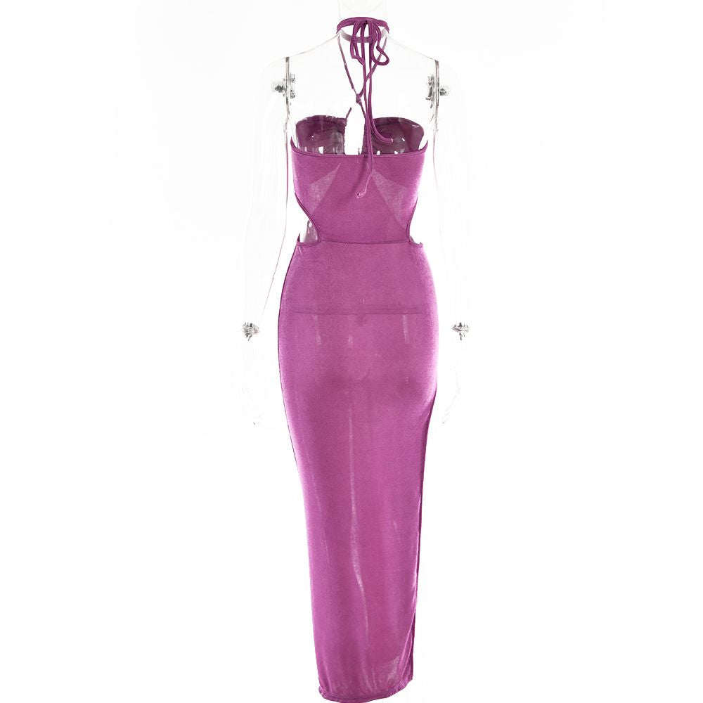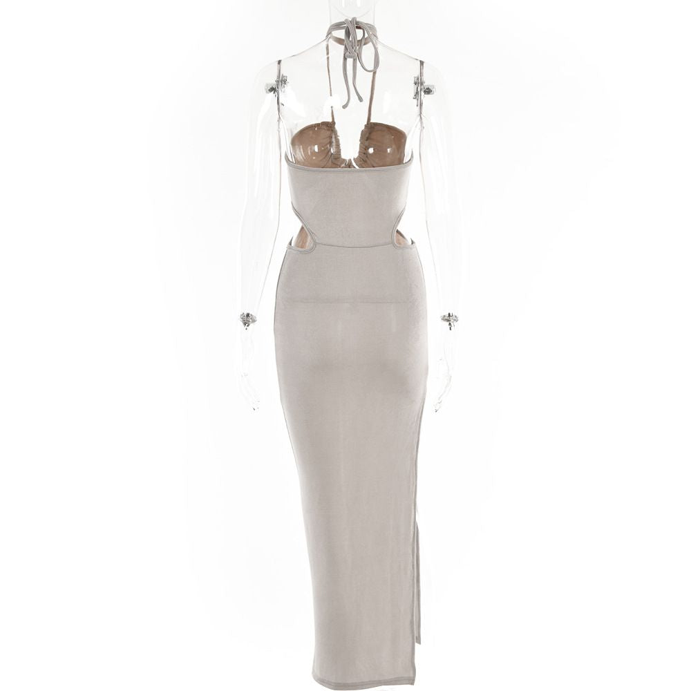 Frauen Halfter ausgeschnittenes rückenfreies Korsett Midikleid mit hoher Taille Split Slim Grunge Vestidos 2022 Sommer