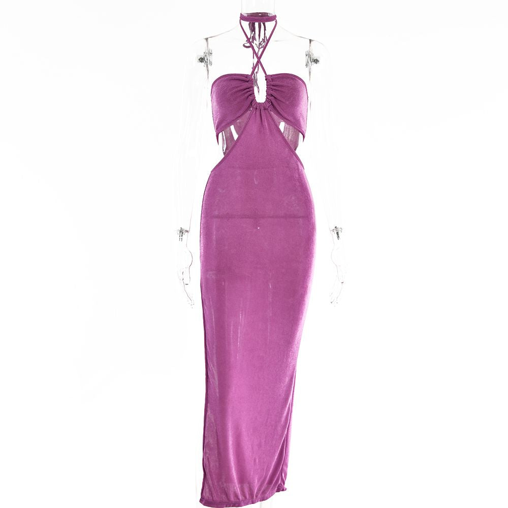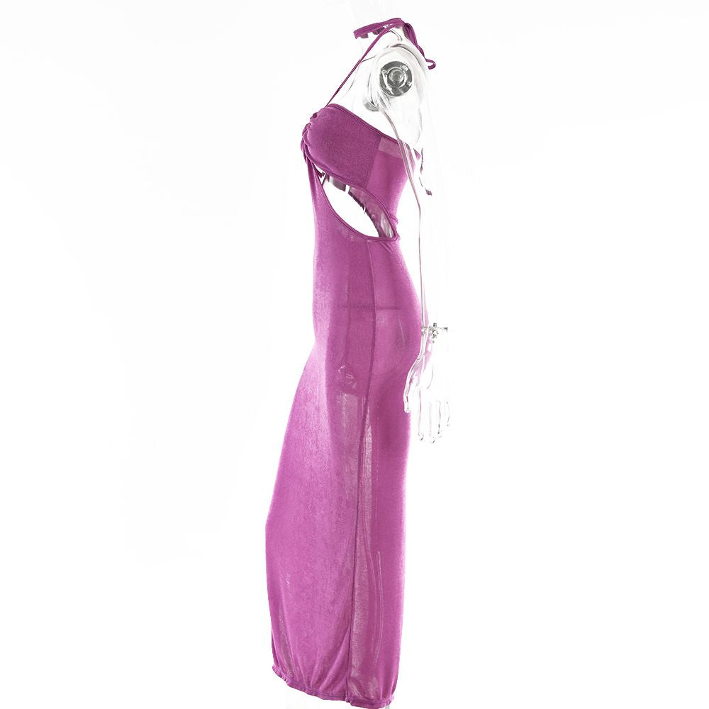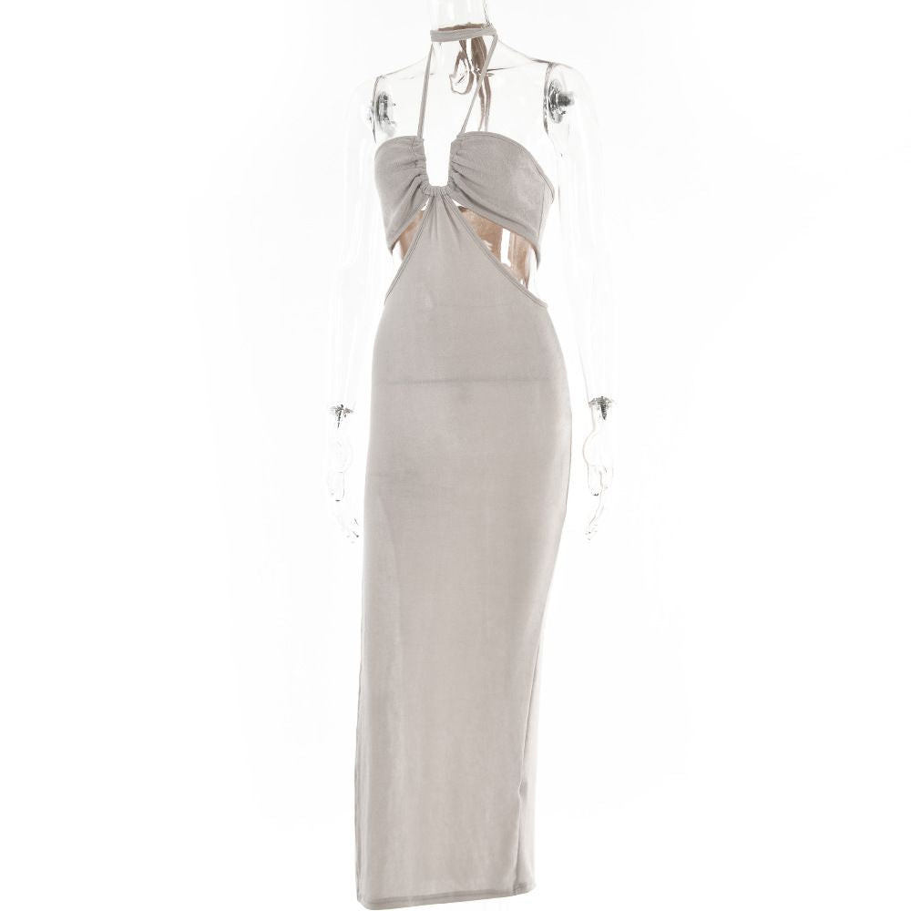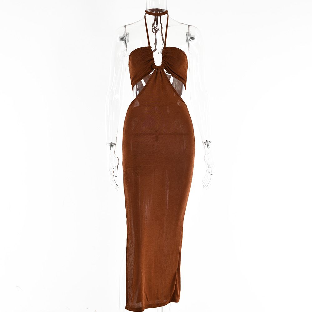 Frauen Halfter ausgeschnittenes rückenfreies Korsett Midikleid mit hoher Taille Split Slim Grunge Vestidos 2022 Sommer