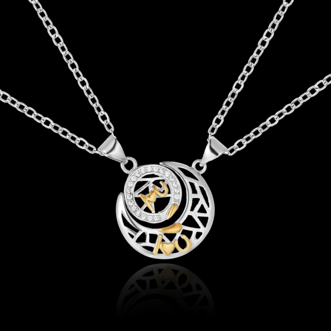 2Pcs Simple Matching Sun Moon Pendant Couple Necklace I Love You Jewelry