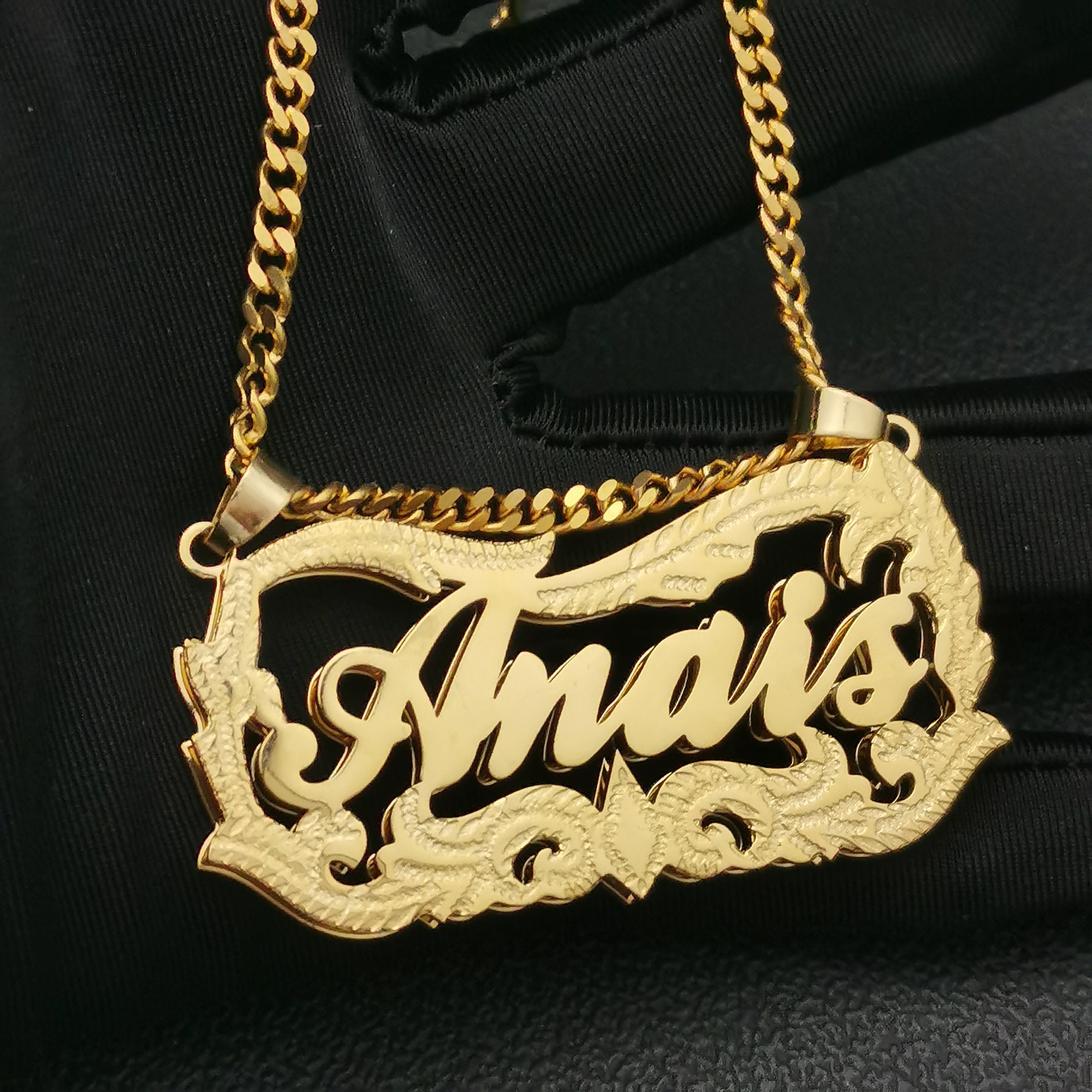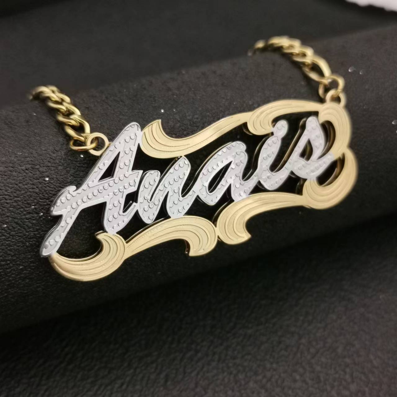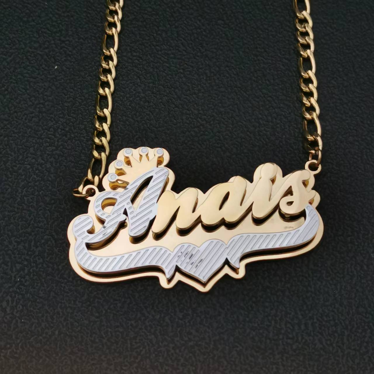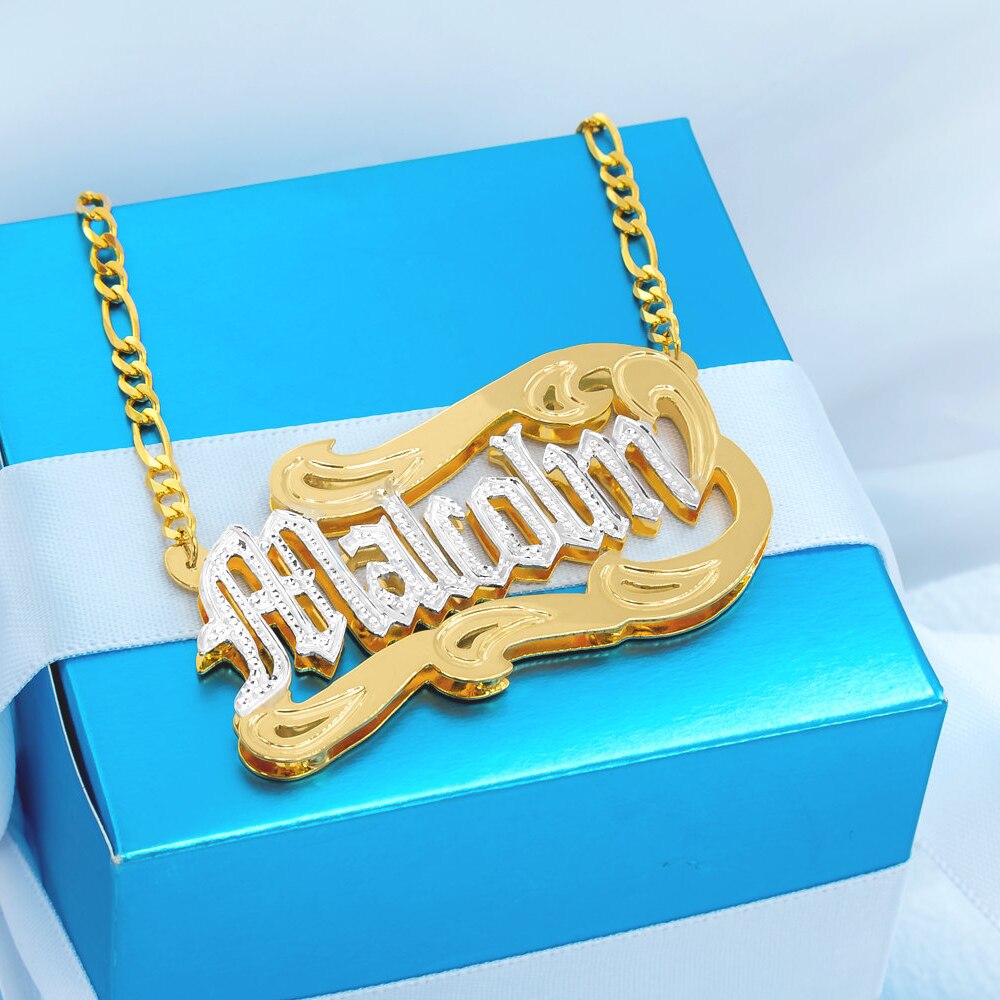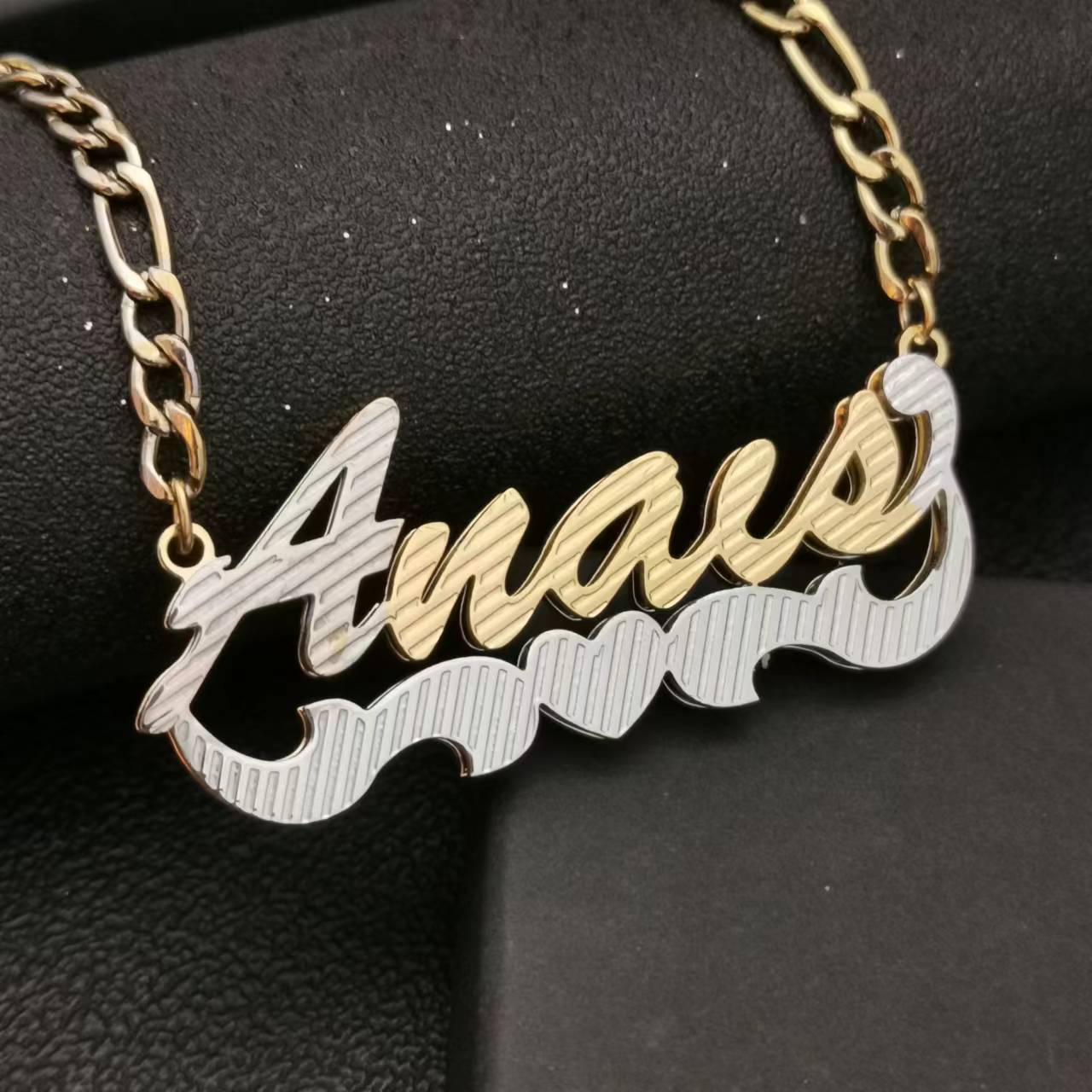 Customized Nameplate Necklace Double Name Plate Pendant Custom Letter With Figaro Chain