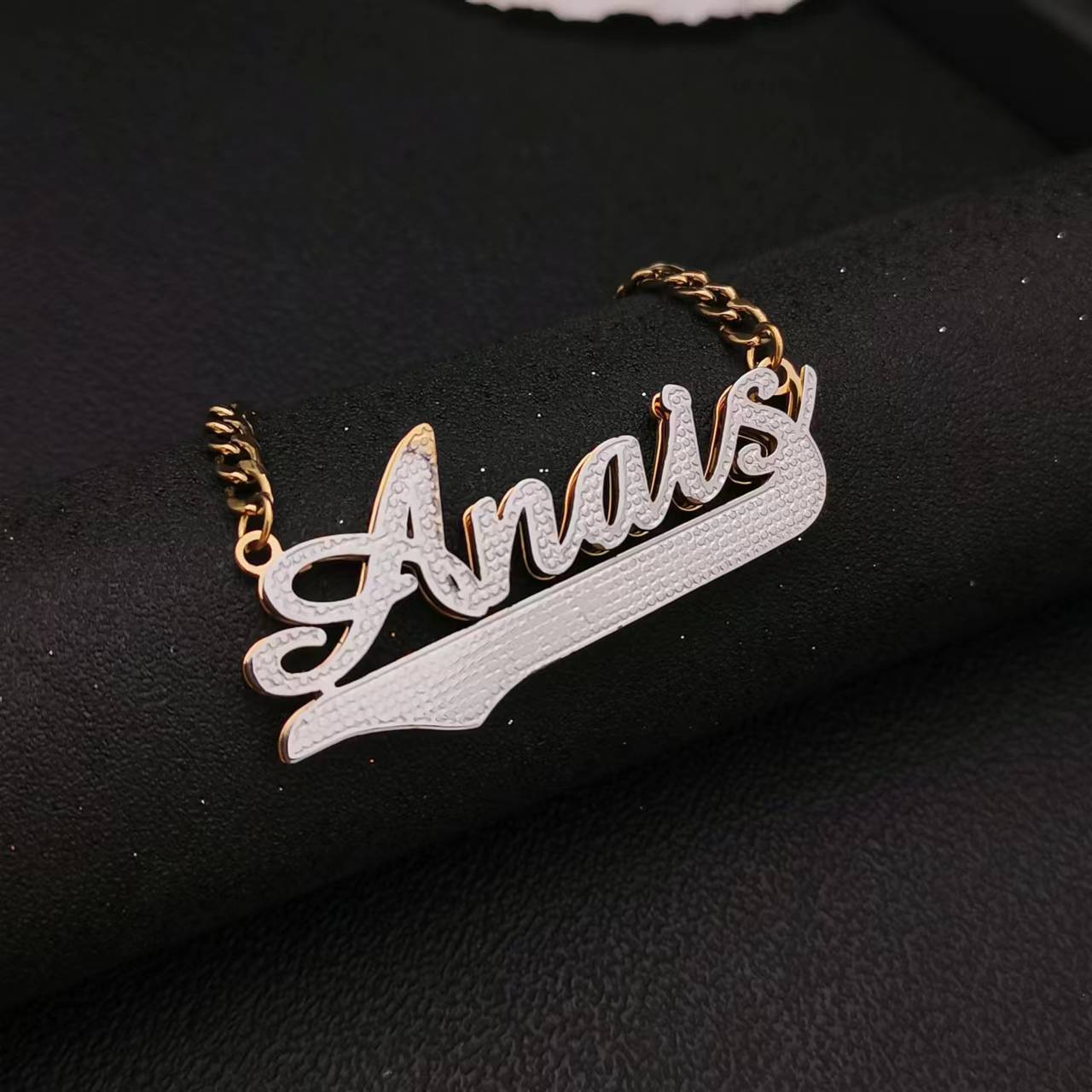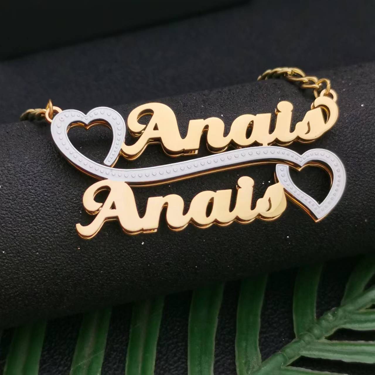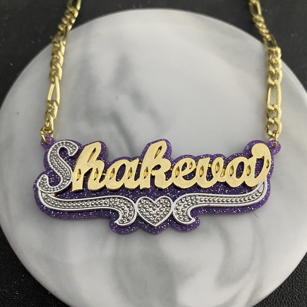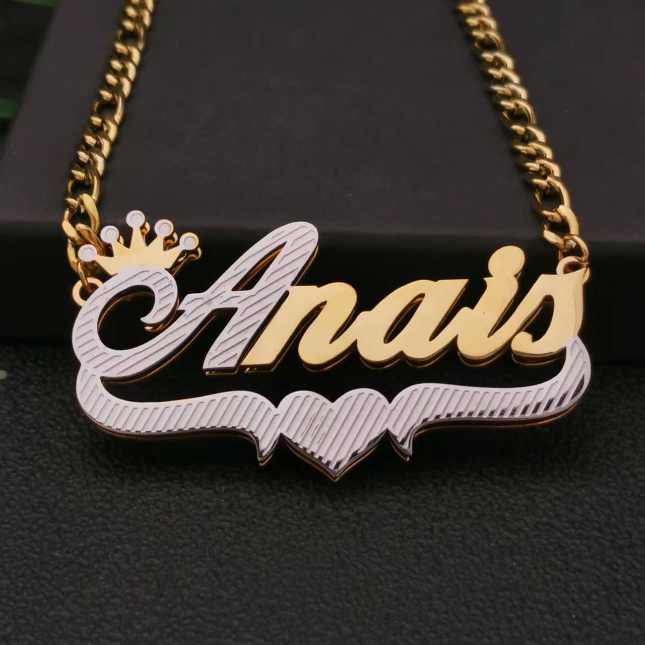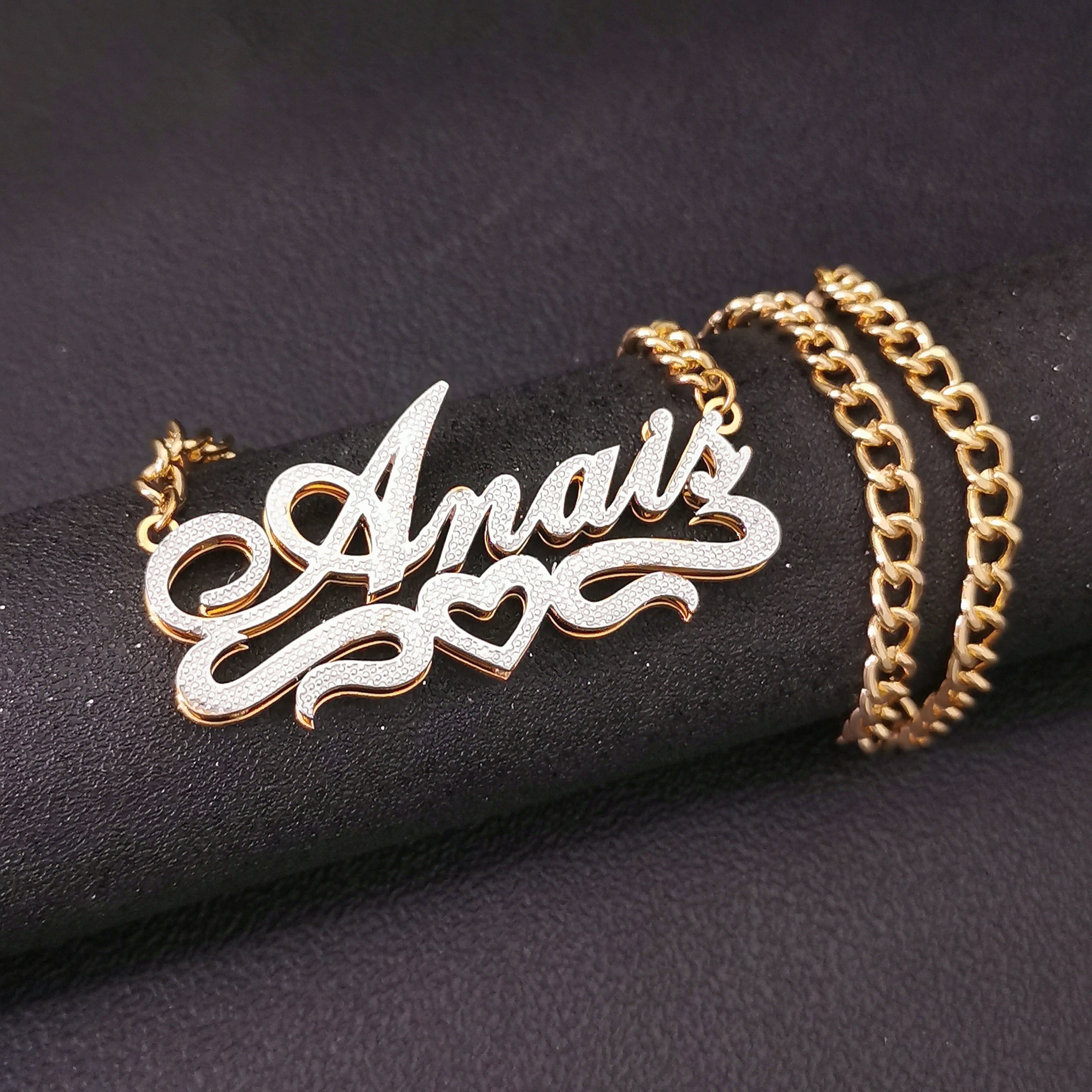 Customized Nameplate Necklace Double Name Plate Pendant Custom Letter With Figaro Chain