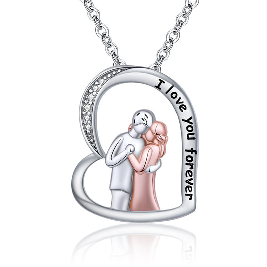 Rose Couple Heart Love Pendant Chain 925 Sterling Silver Husband hugged Wife Necklace for Women Fine Jewelry Valentine Gift
