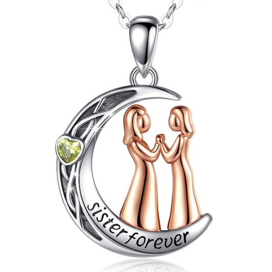 925 Sterling Silver Sister Forever Rose Gold Necklac Moon Style Yellow CZ Pendant Fashion Jewelry for Women Girl