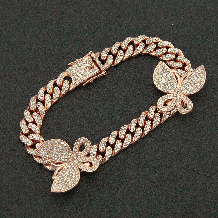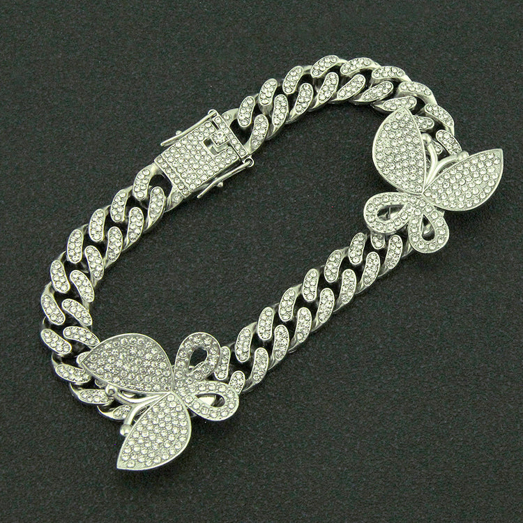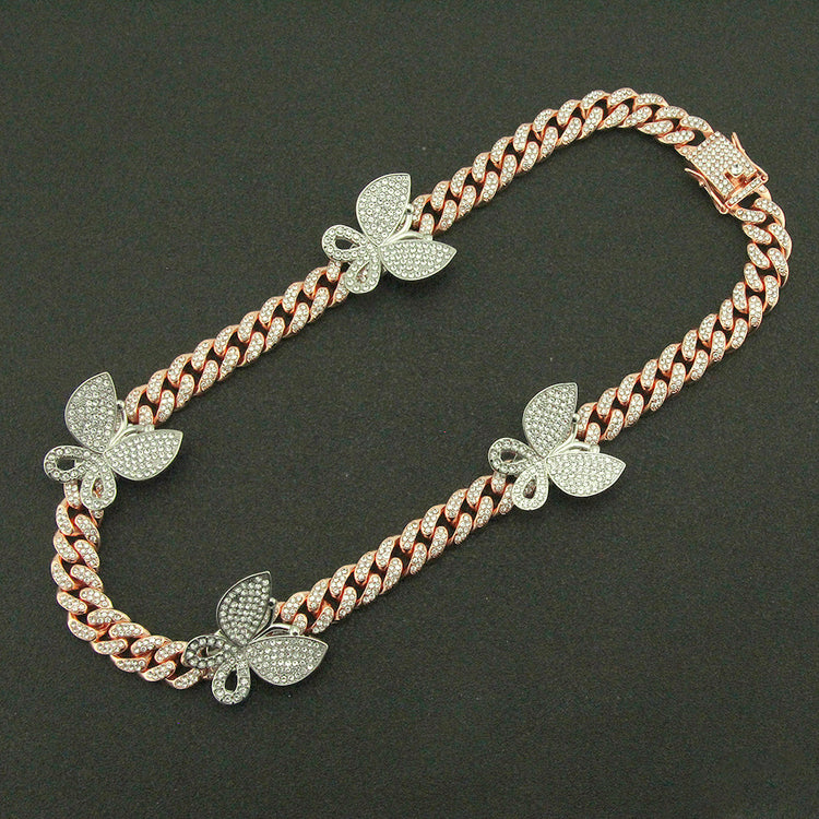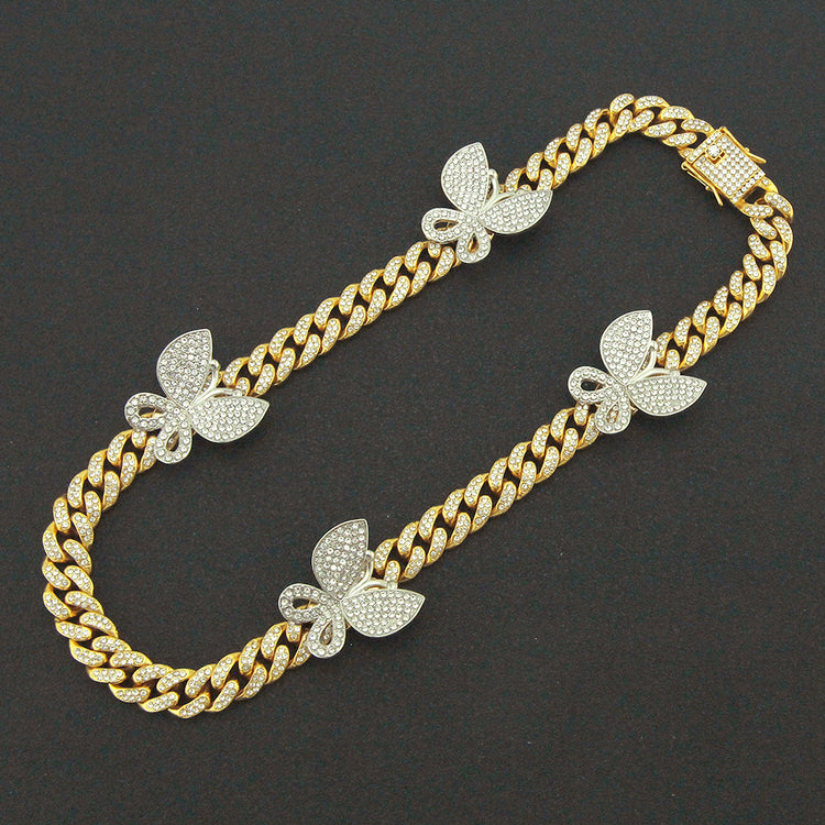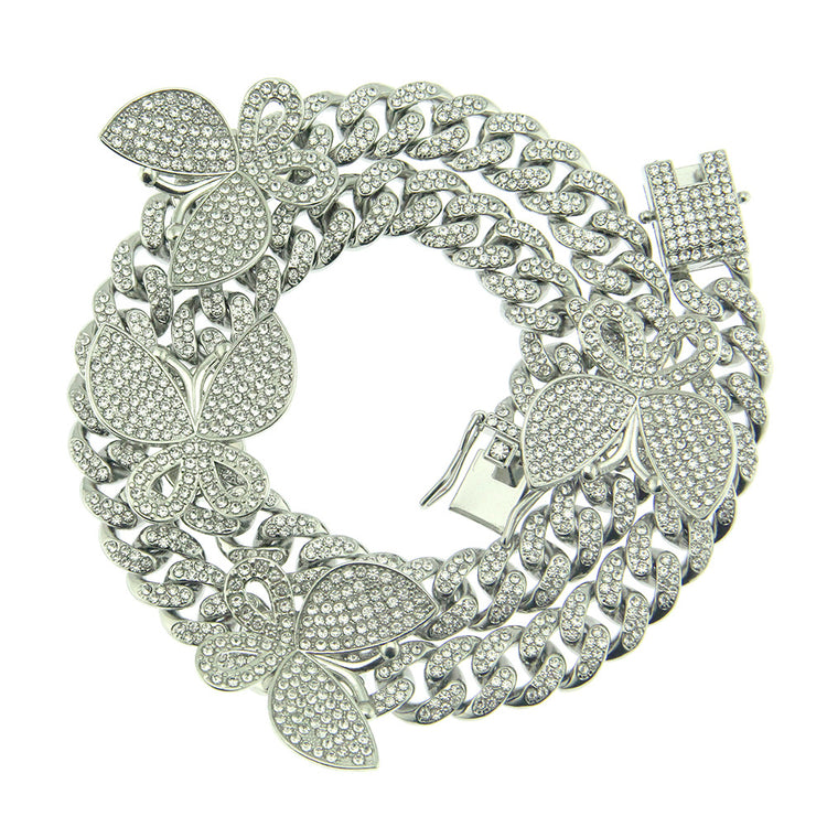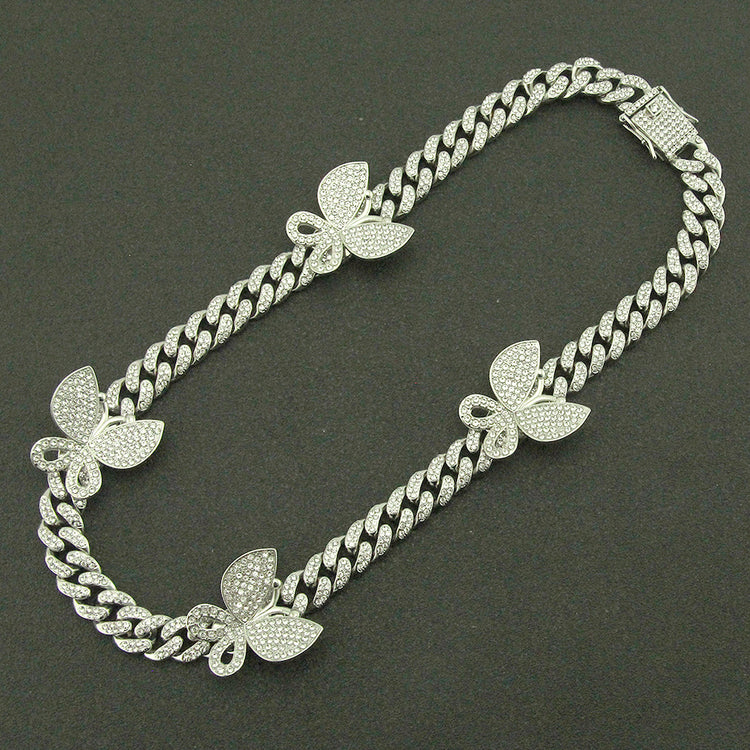Hip-hop full-diamond butterfly Cuban chain necklace
