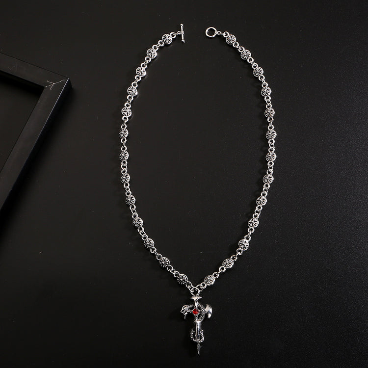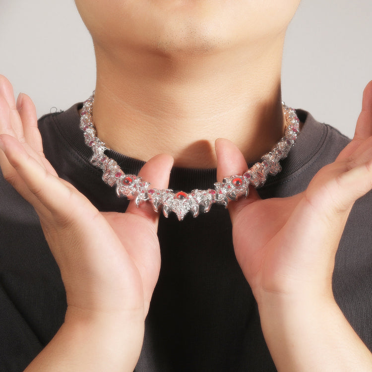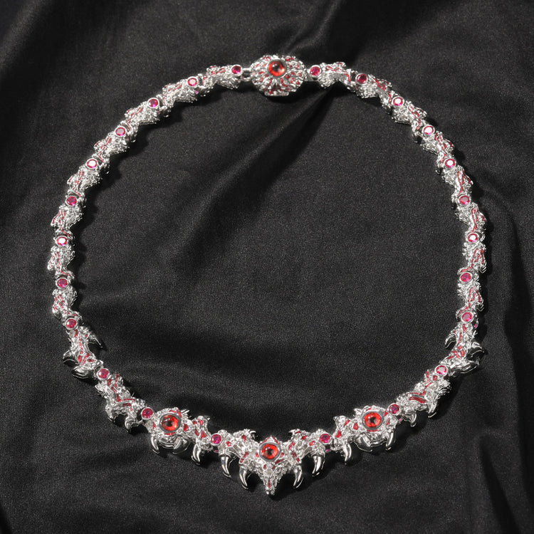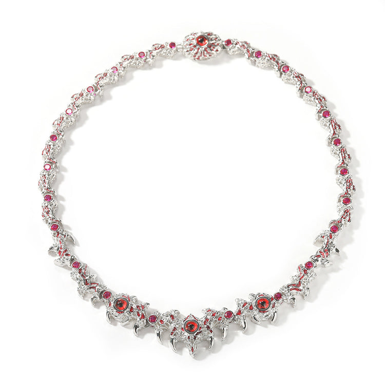 Hip-hop exaggerated spiky parasitic red-eyed thorn diamond-encrusted necklace
