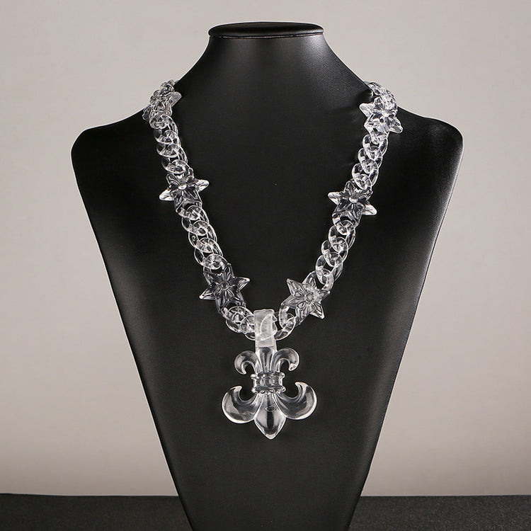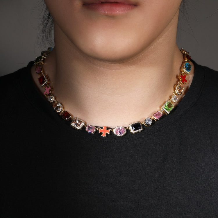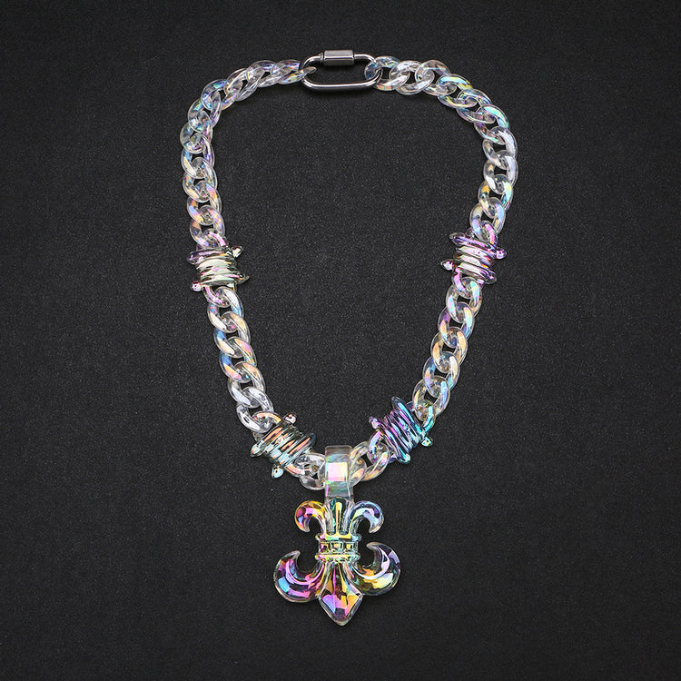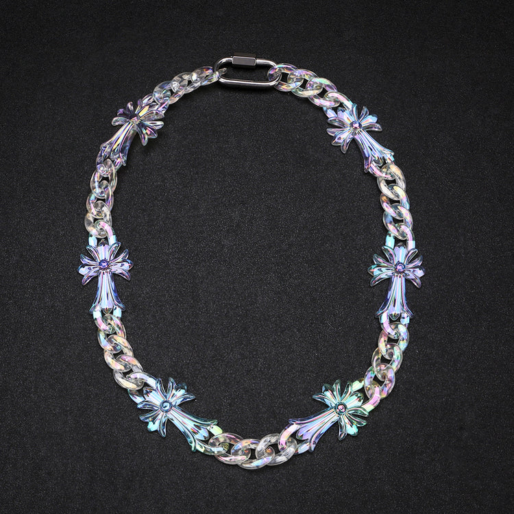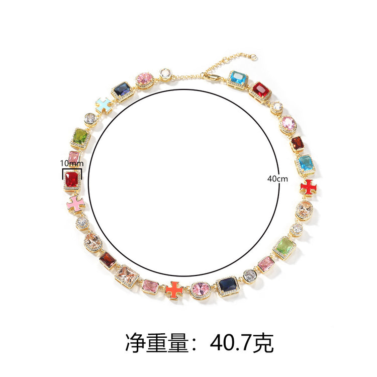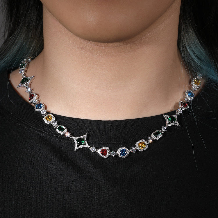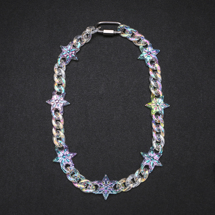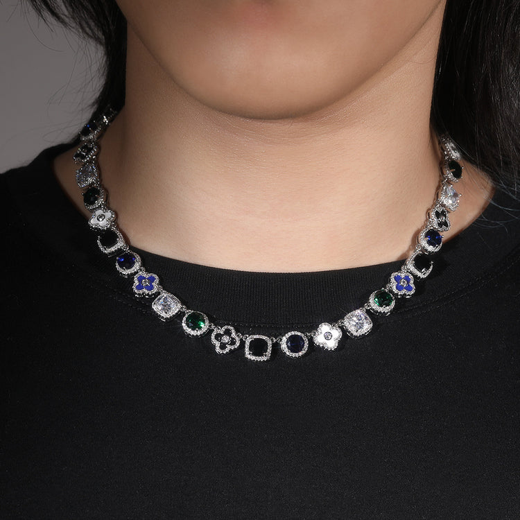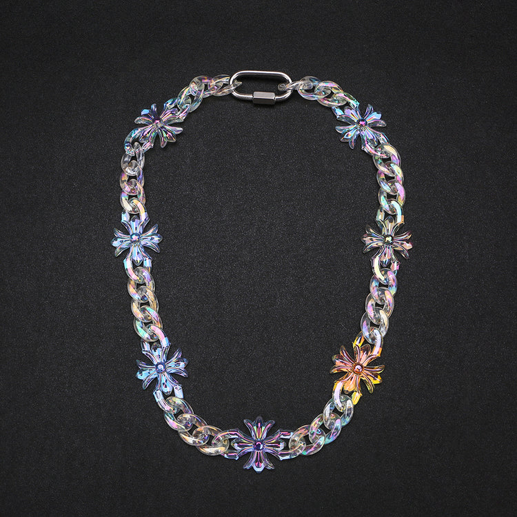 Hip-hop colorful rhinestone-encrusted flower necklace