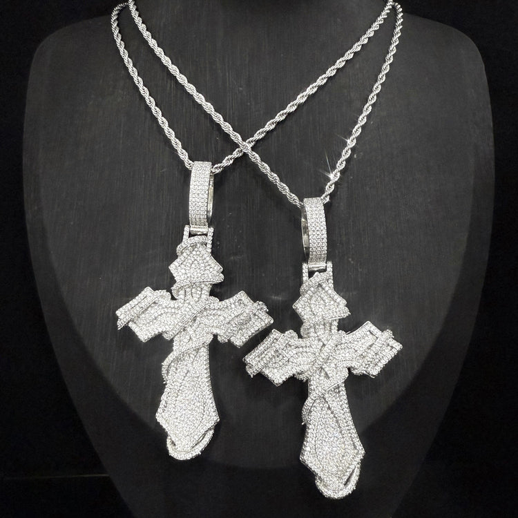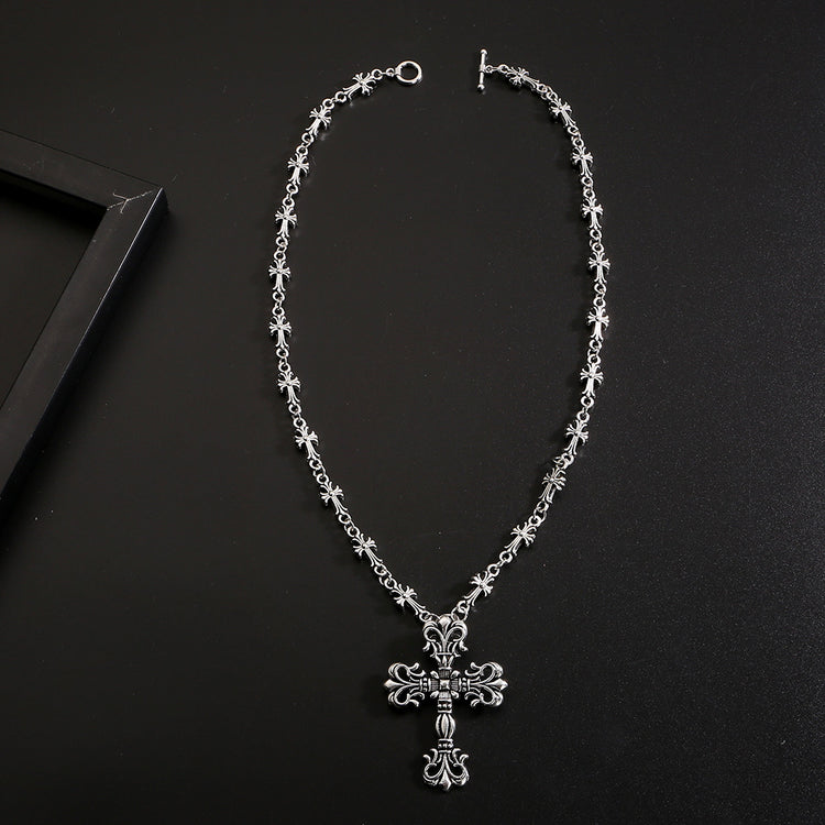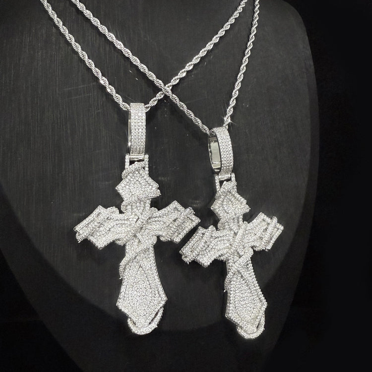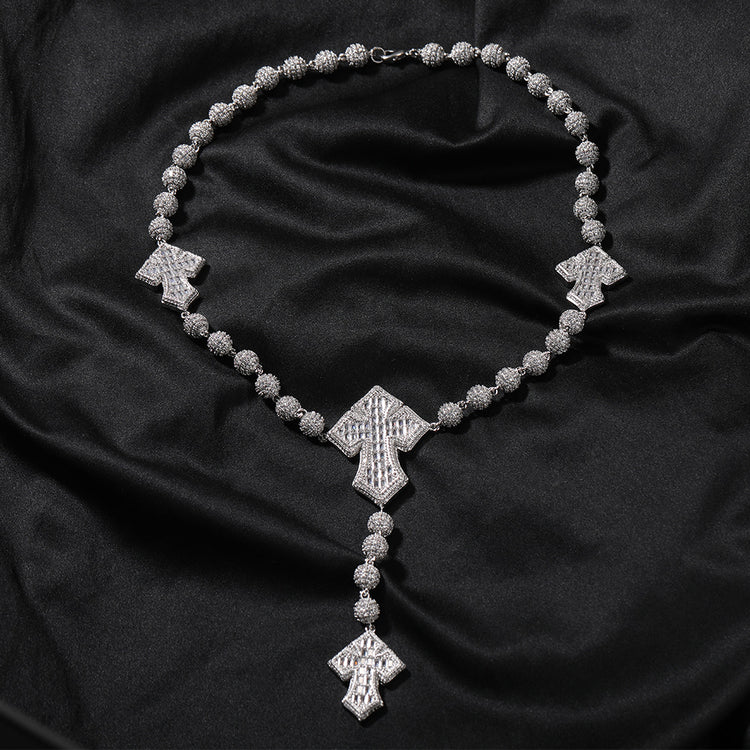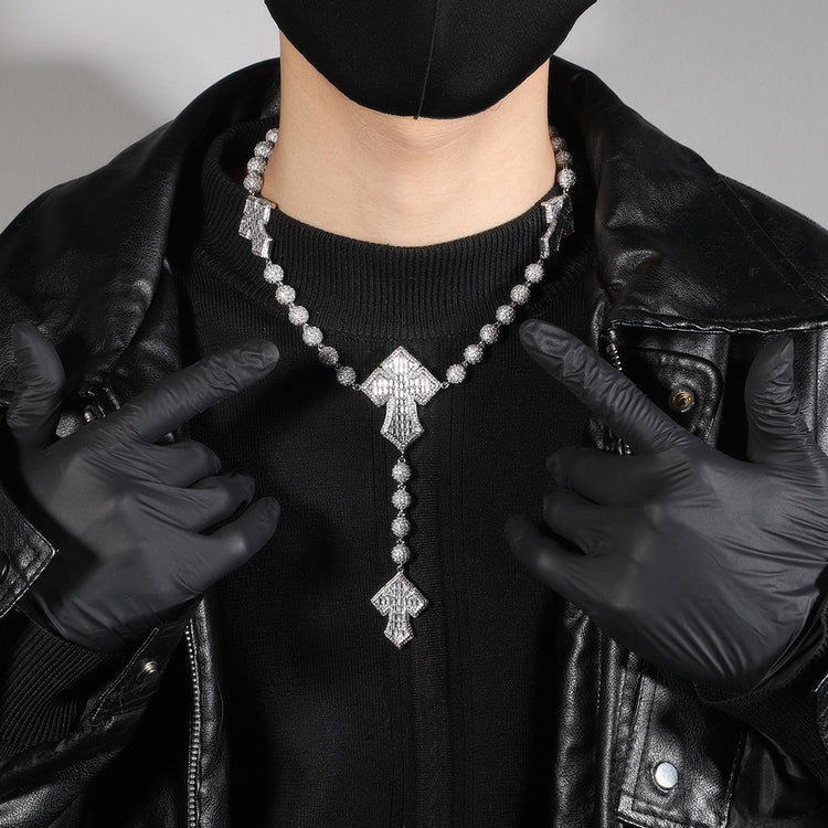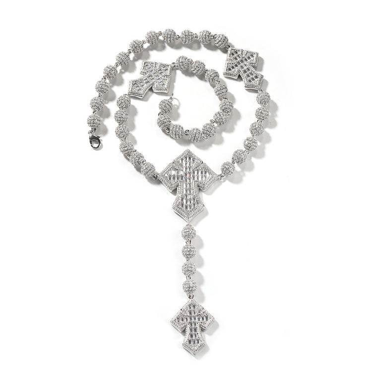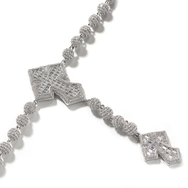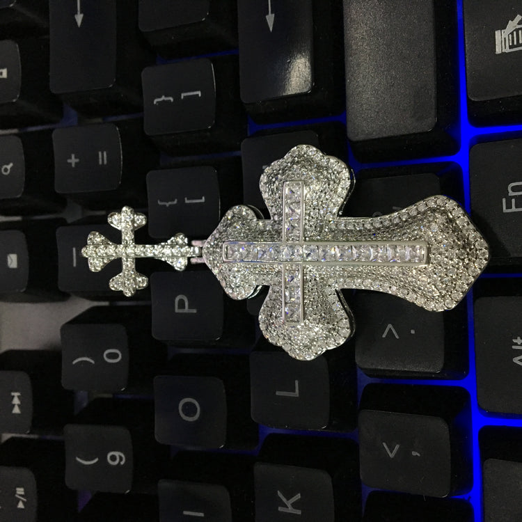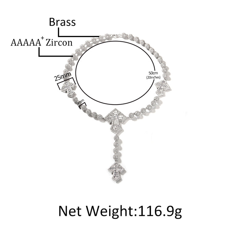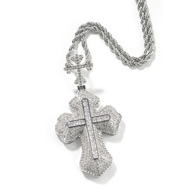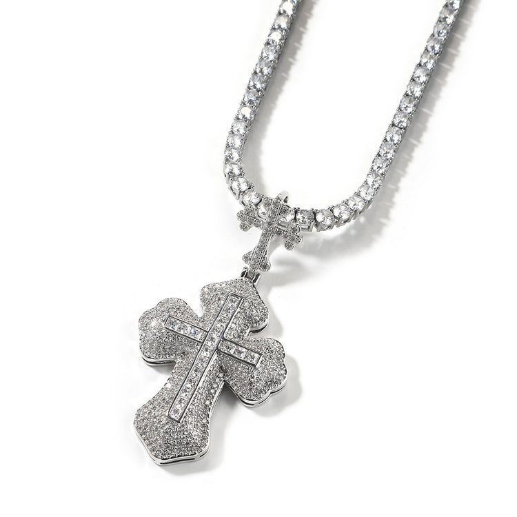 Hip-hop zircon-encrusted couple's necklace with large and small crosses