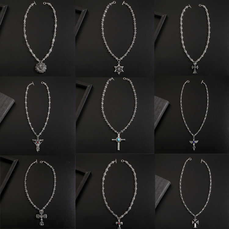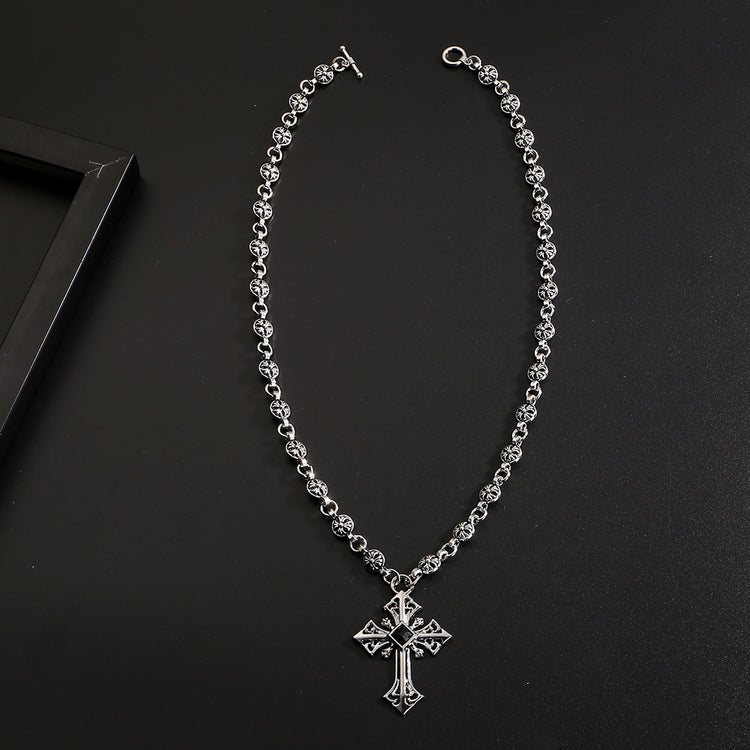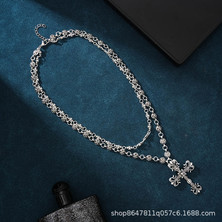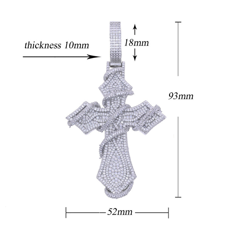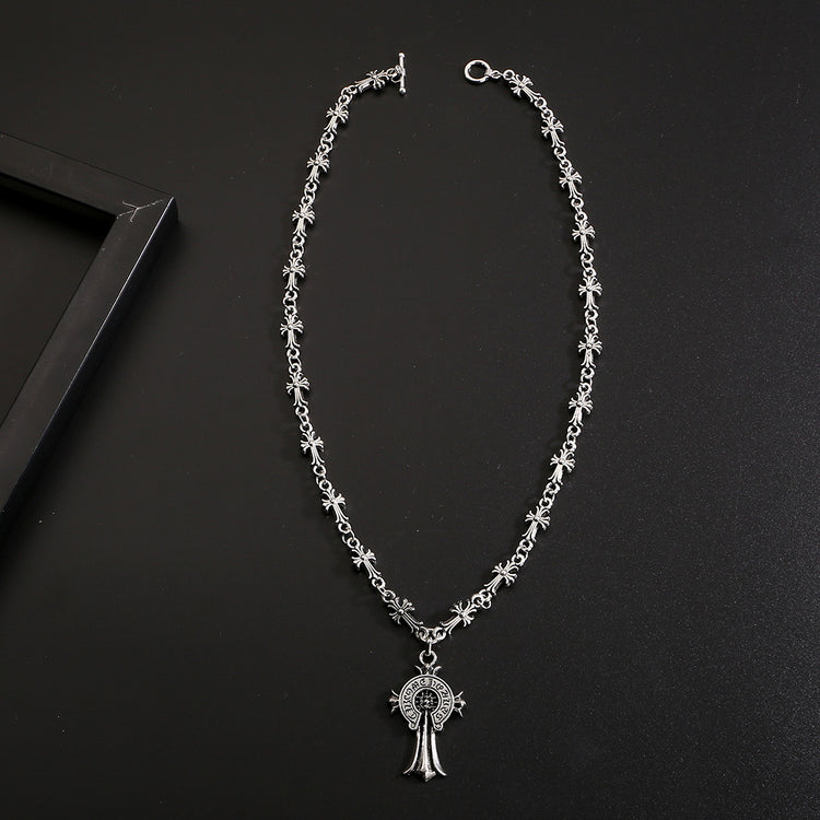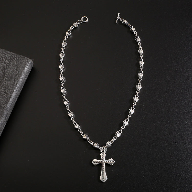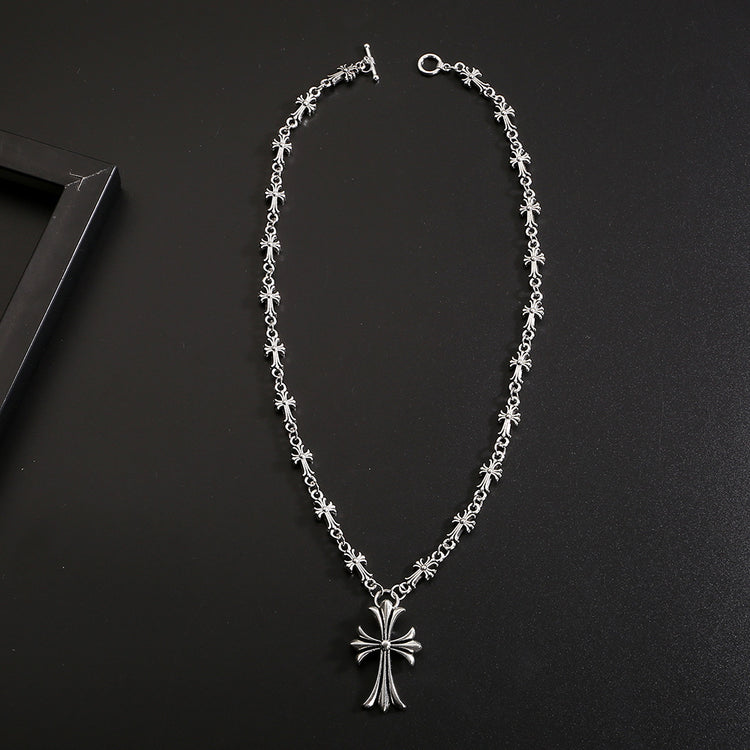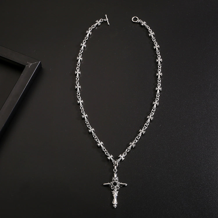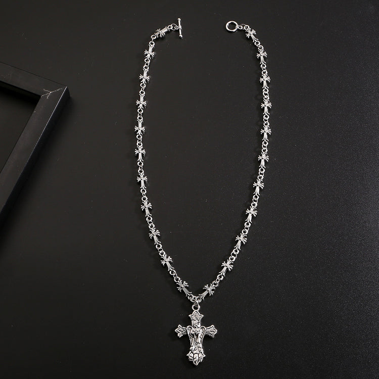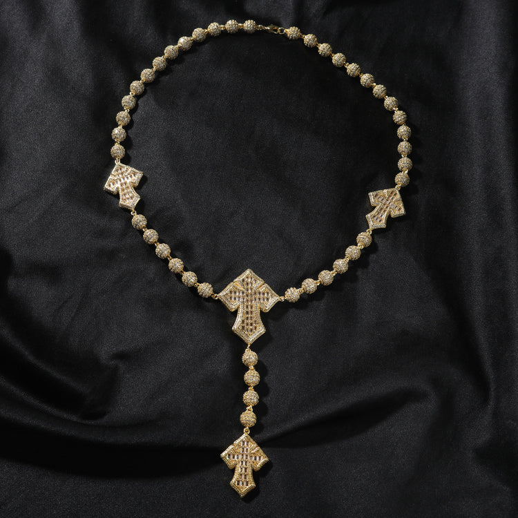 Hip-hop zircon-encrusted couple's necklace with large and small crosses