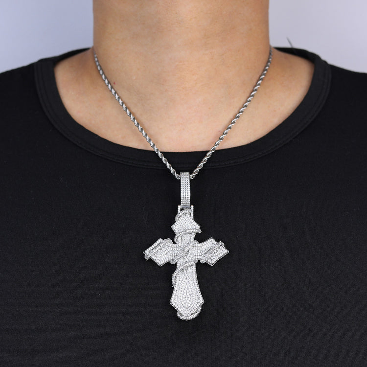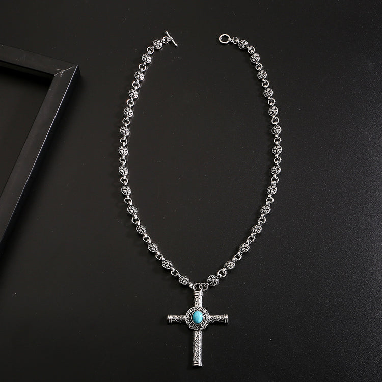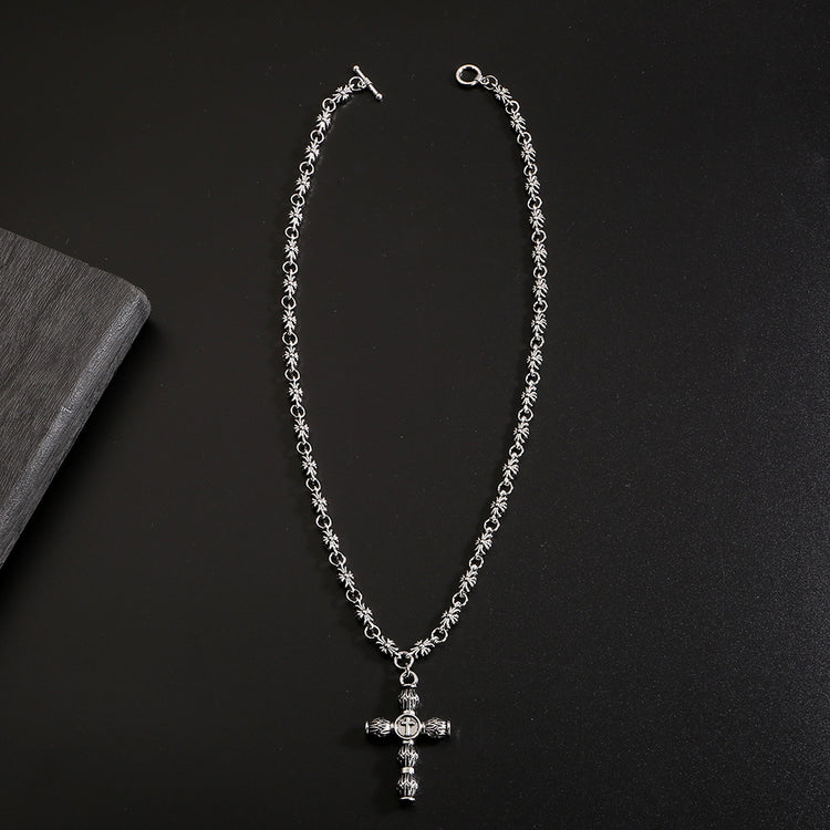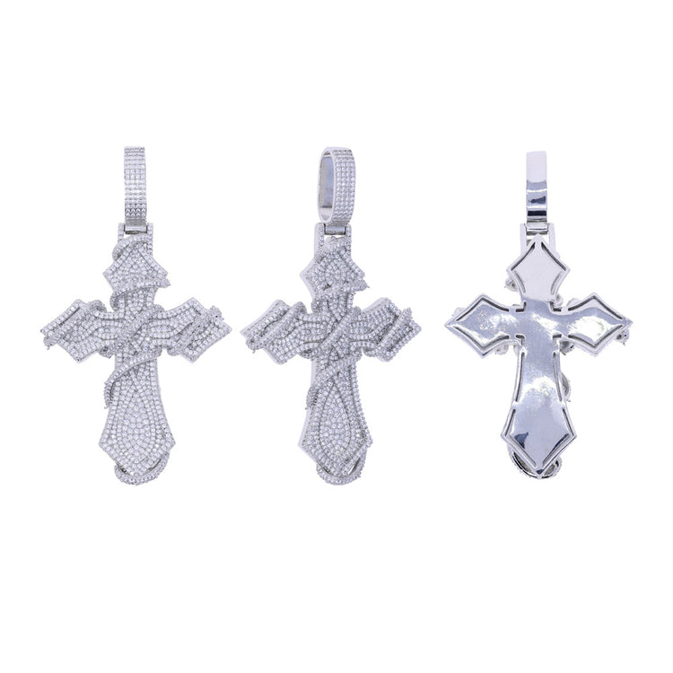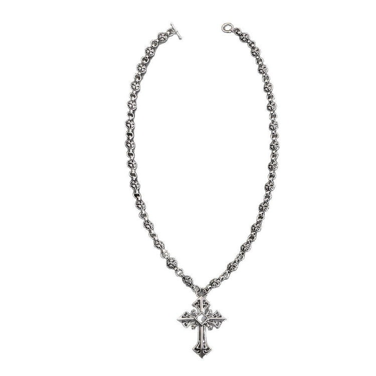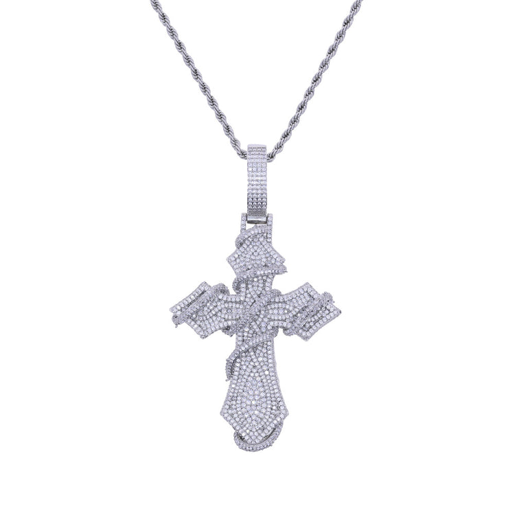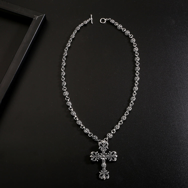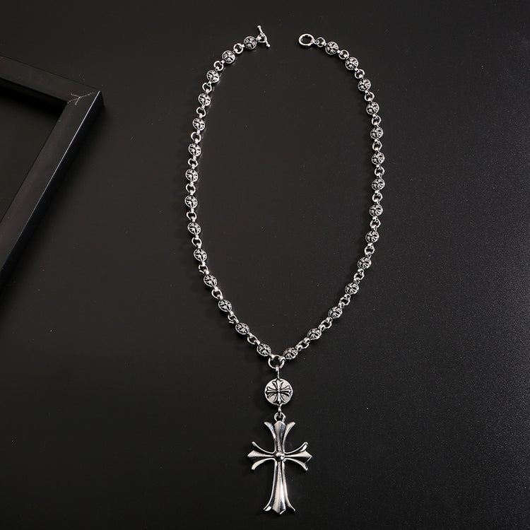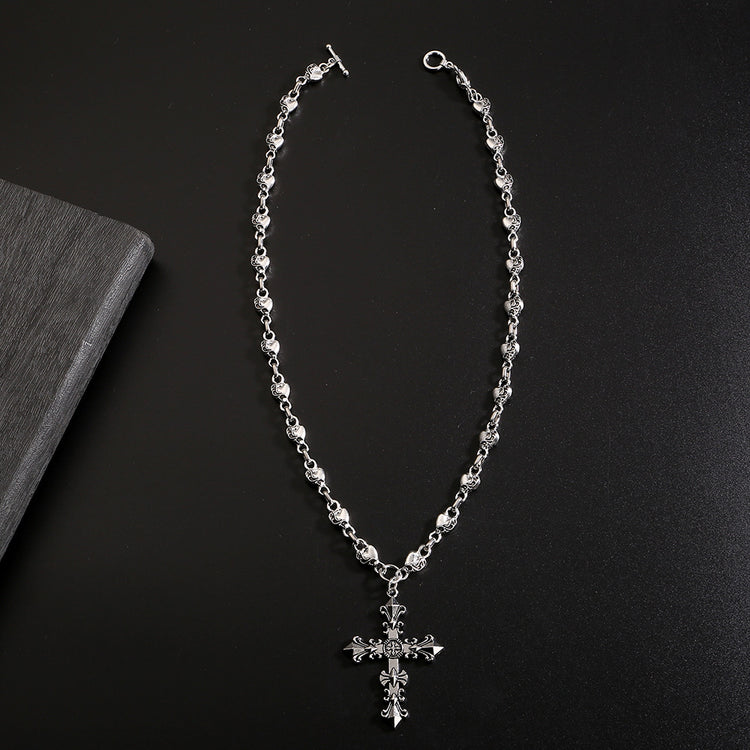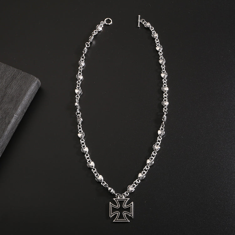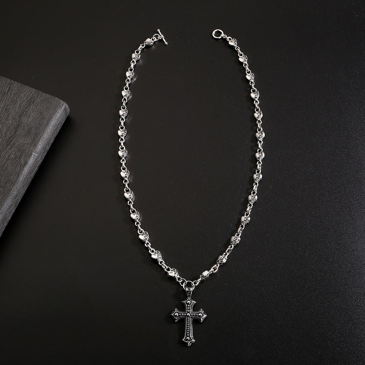 Hip-hop zircon-encrusted couple's necklace with large and small crosses
