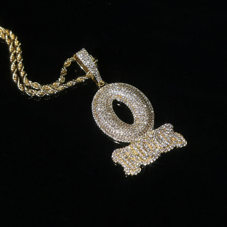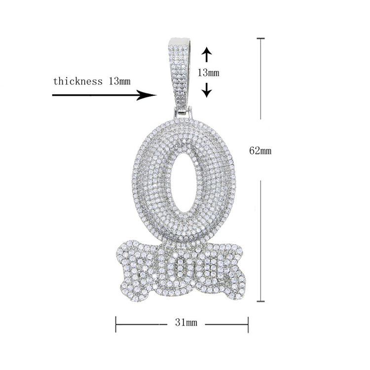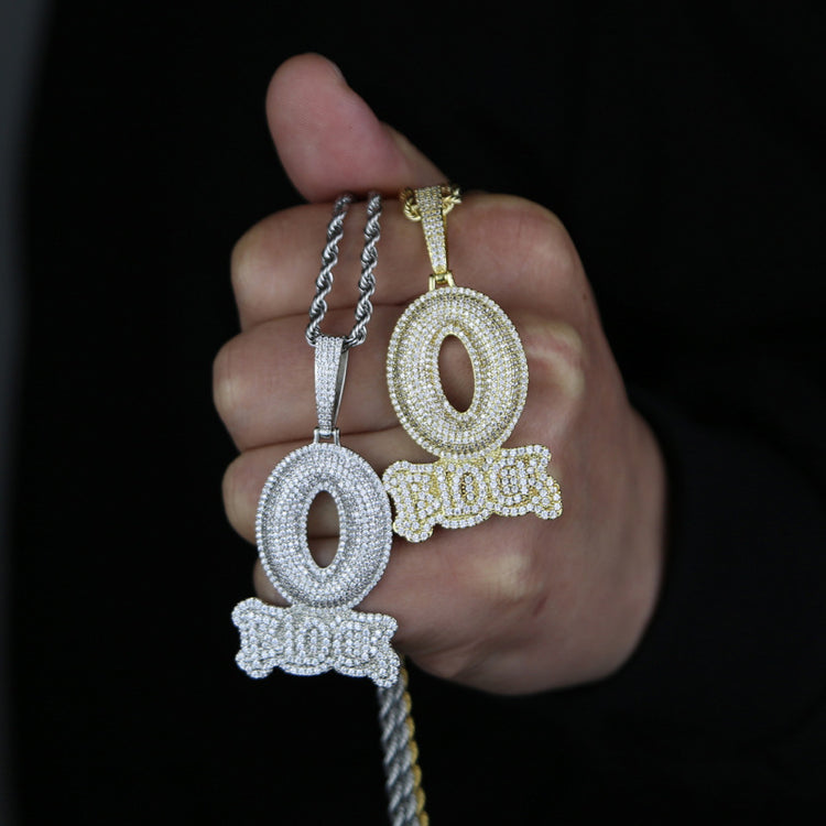 Hip-hop zircon-encrusted O BLOCK letter pendant