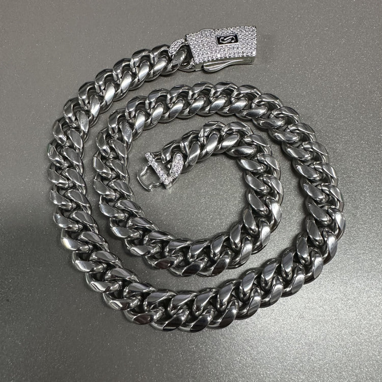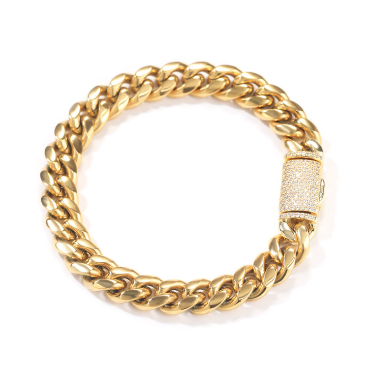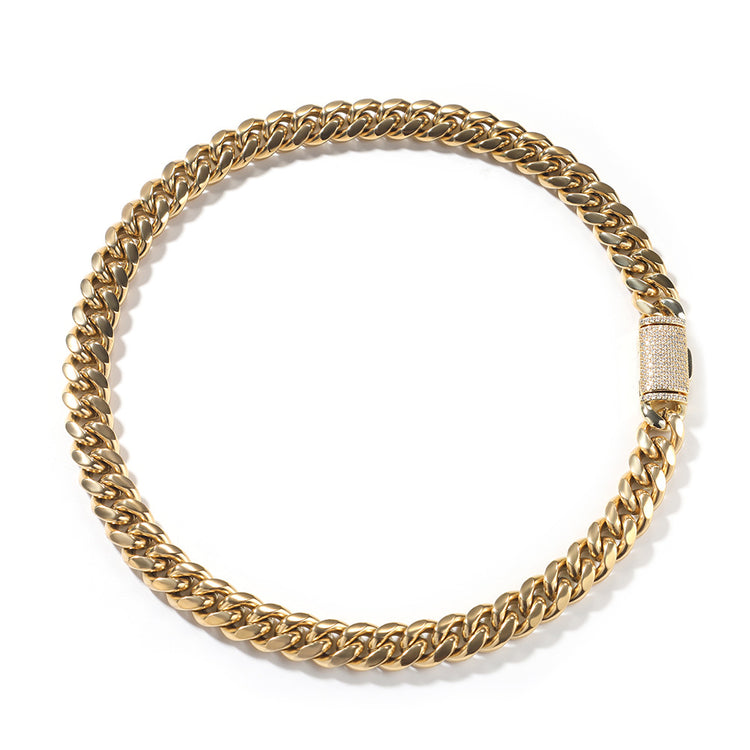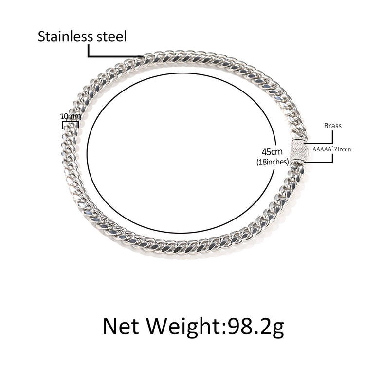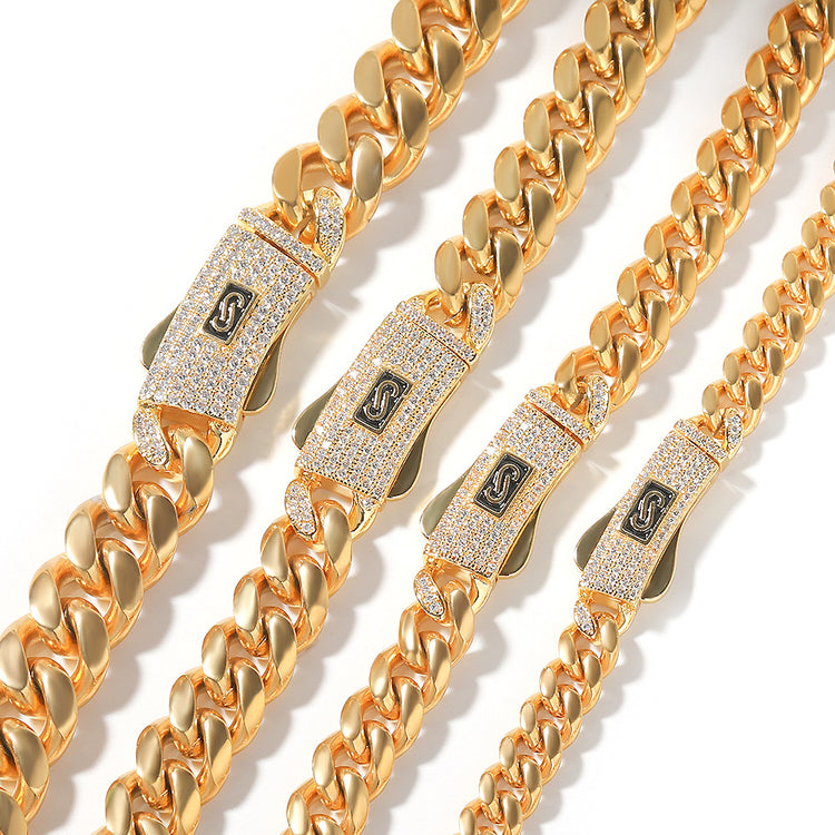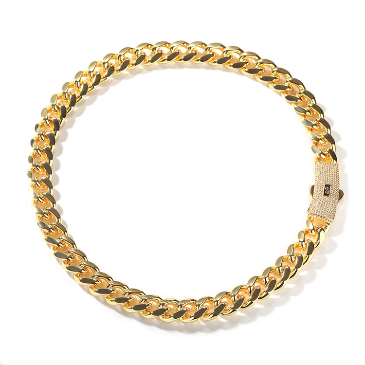 Hip-hop diamond-encrusted clasp smooth Cuban chain