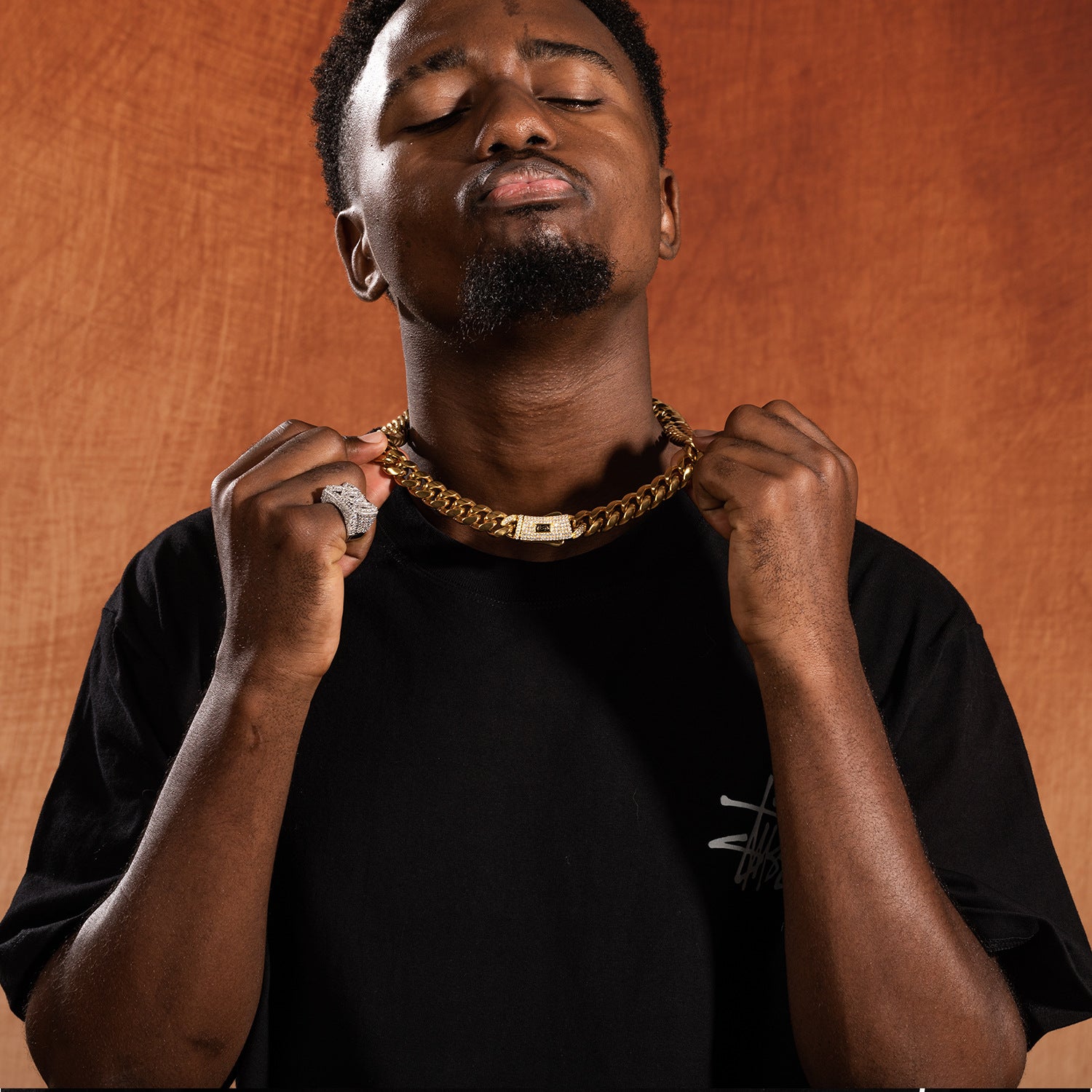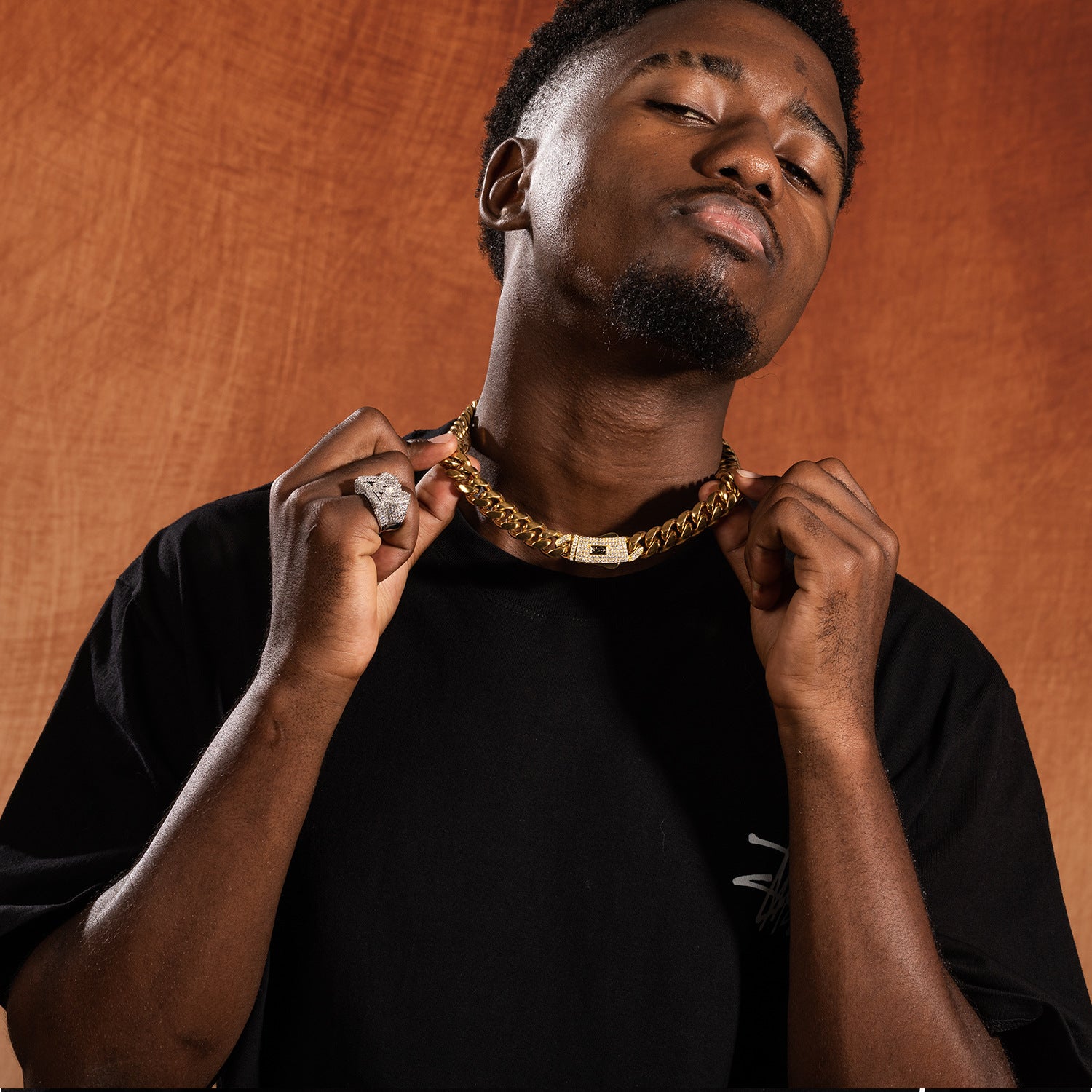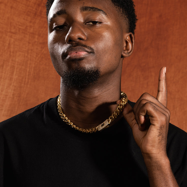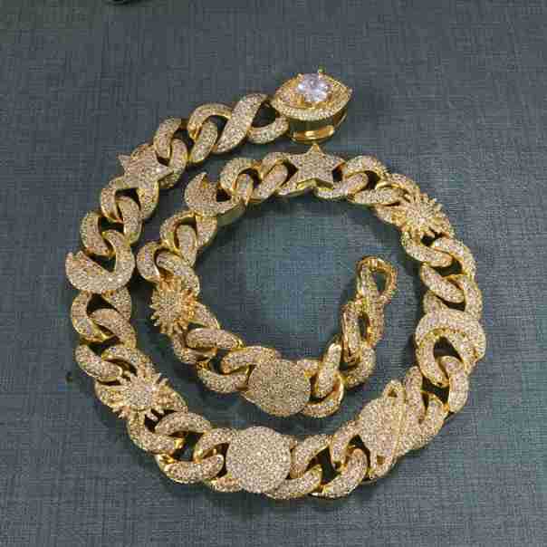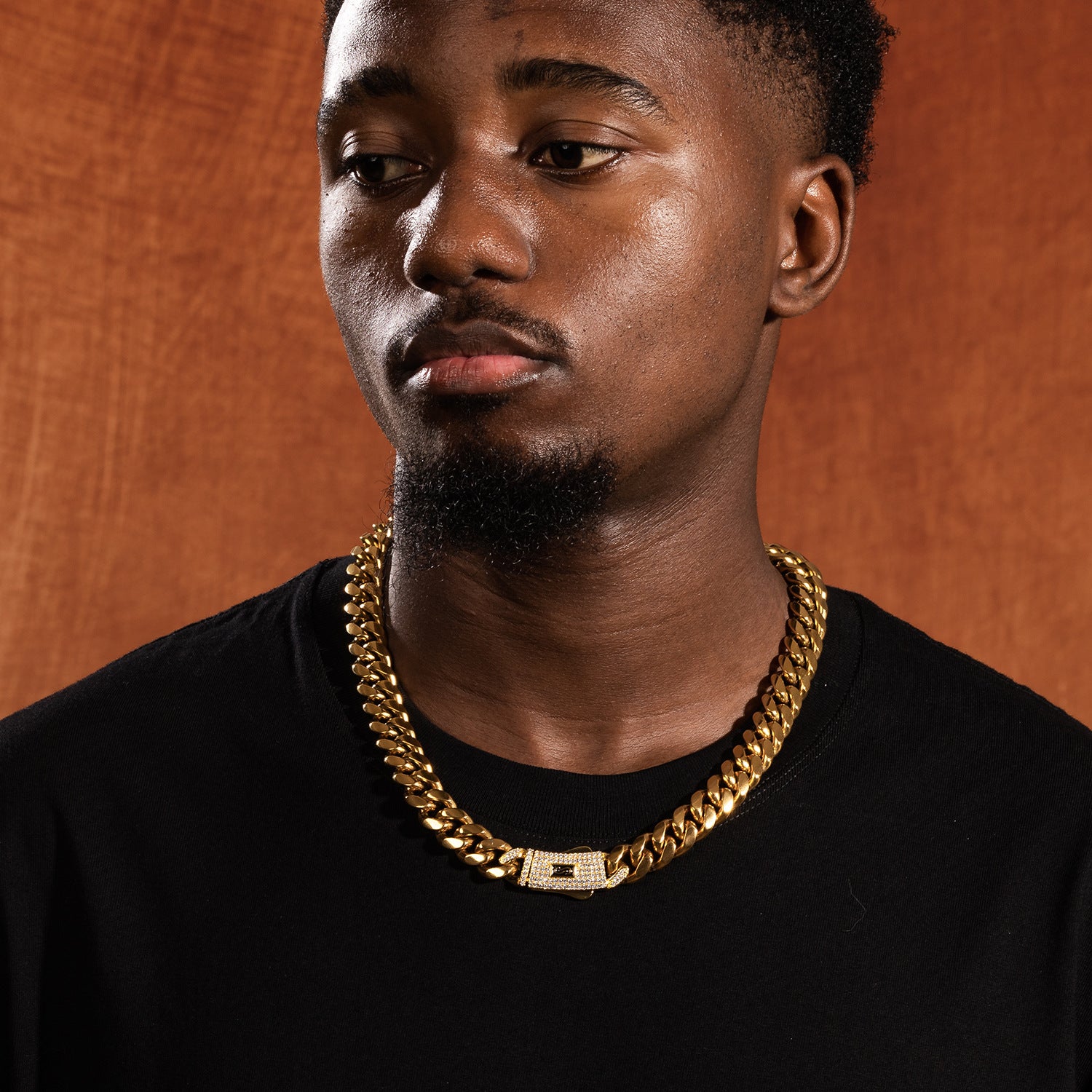 Hip-hop diamond-encrusted clasp smooth Cuban chain