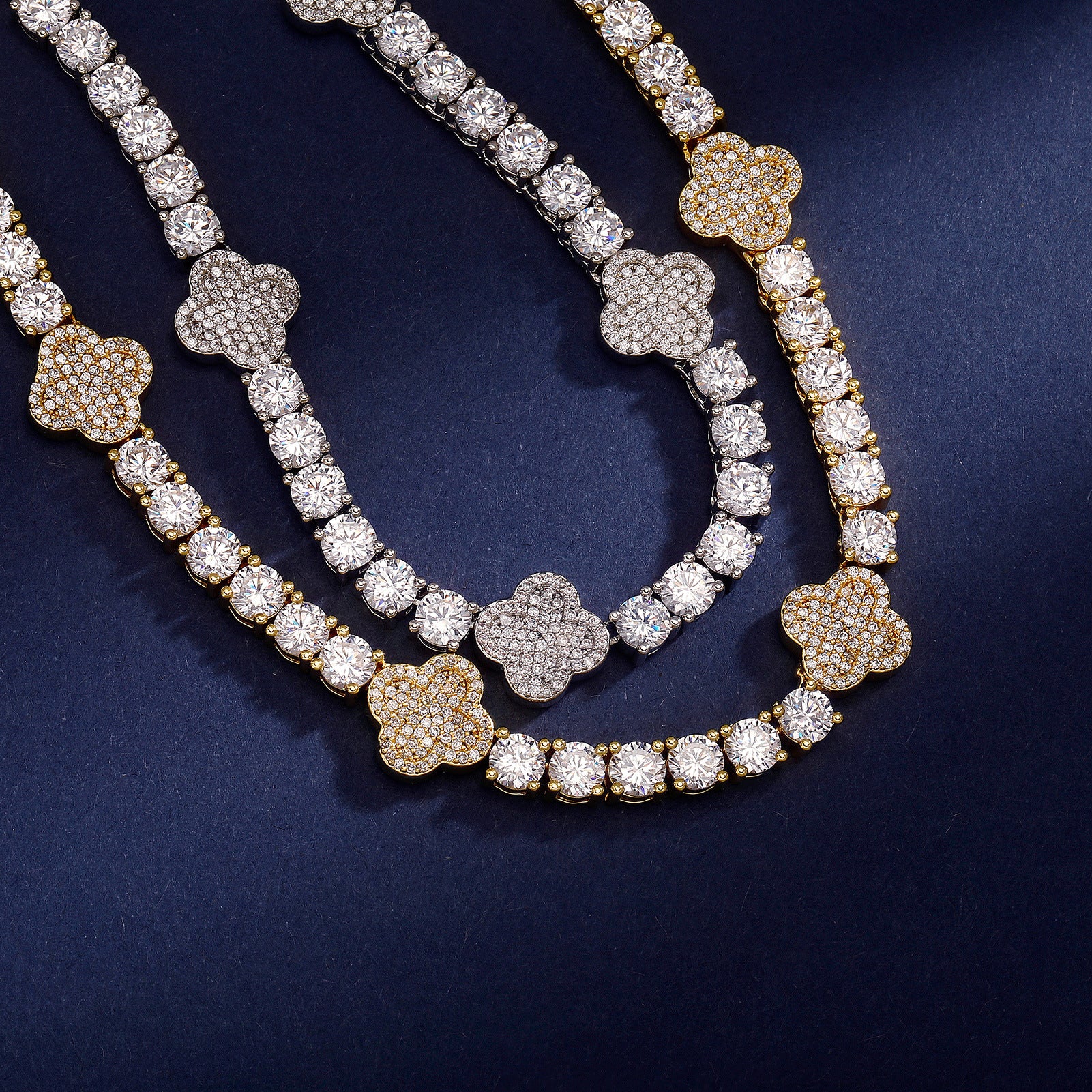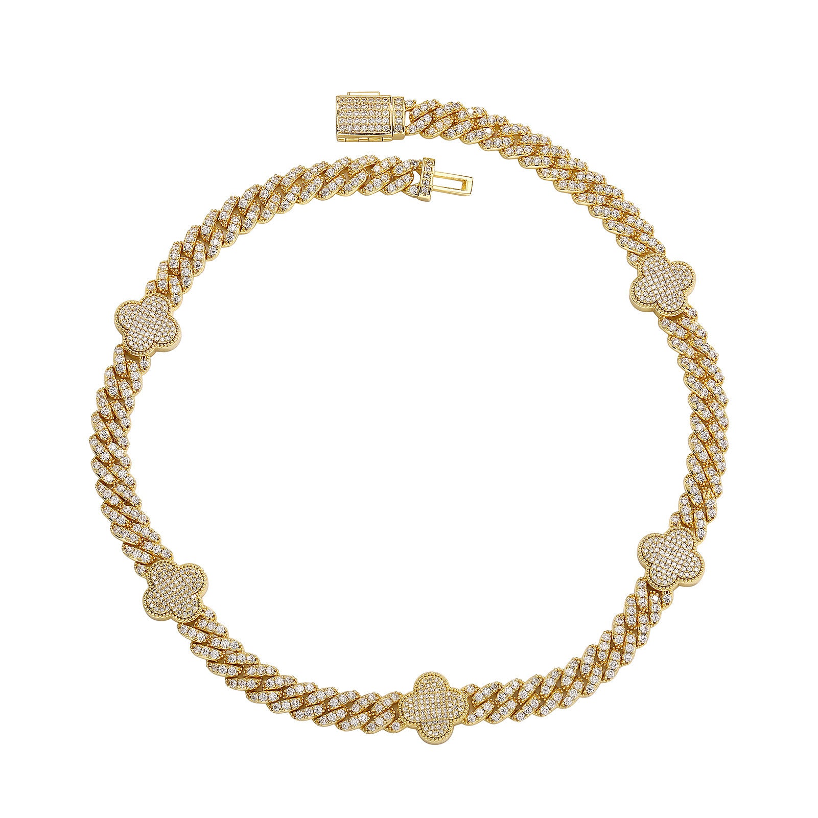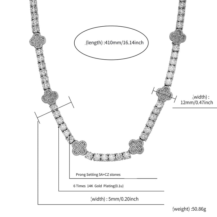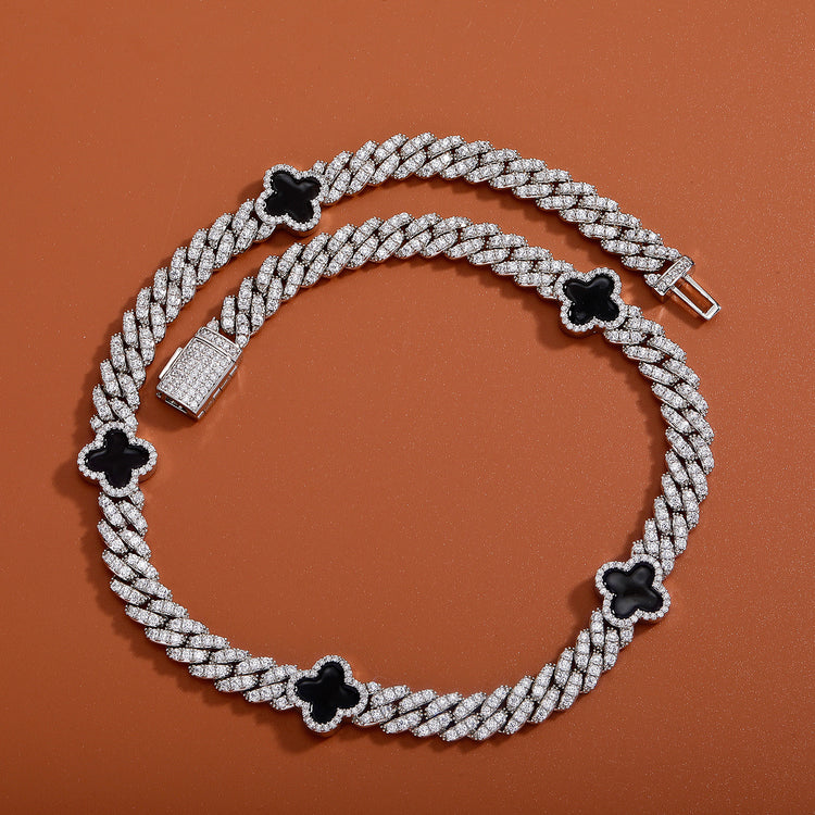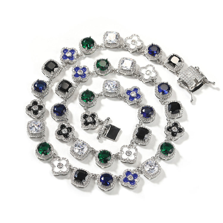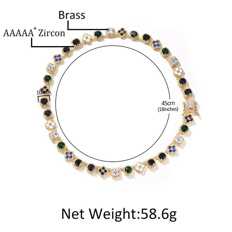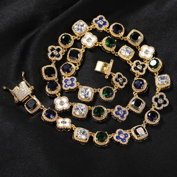 Hip-hop four-leaf clover zircon chain, tennis chain.