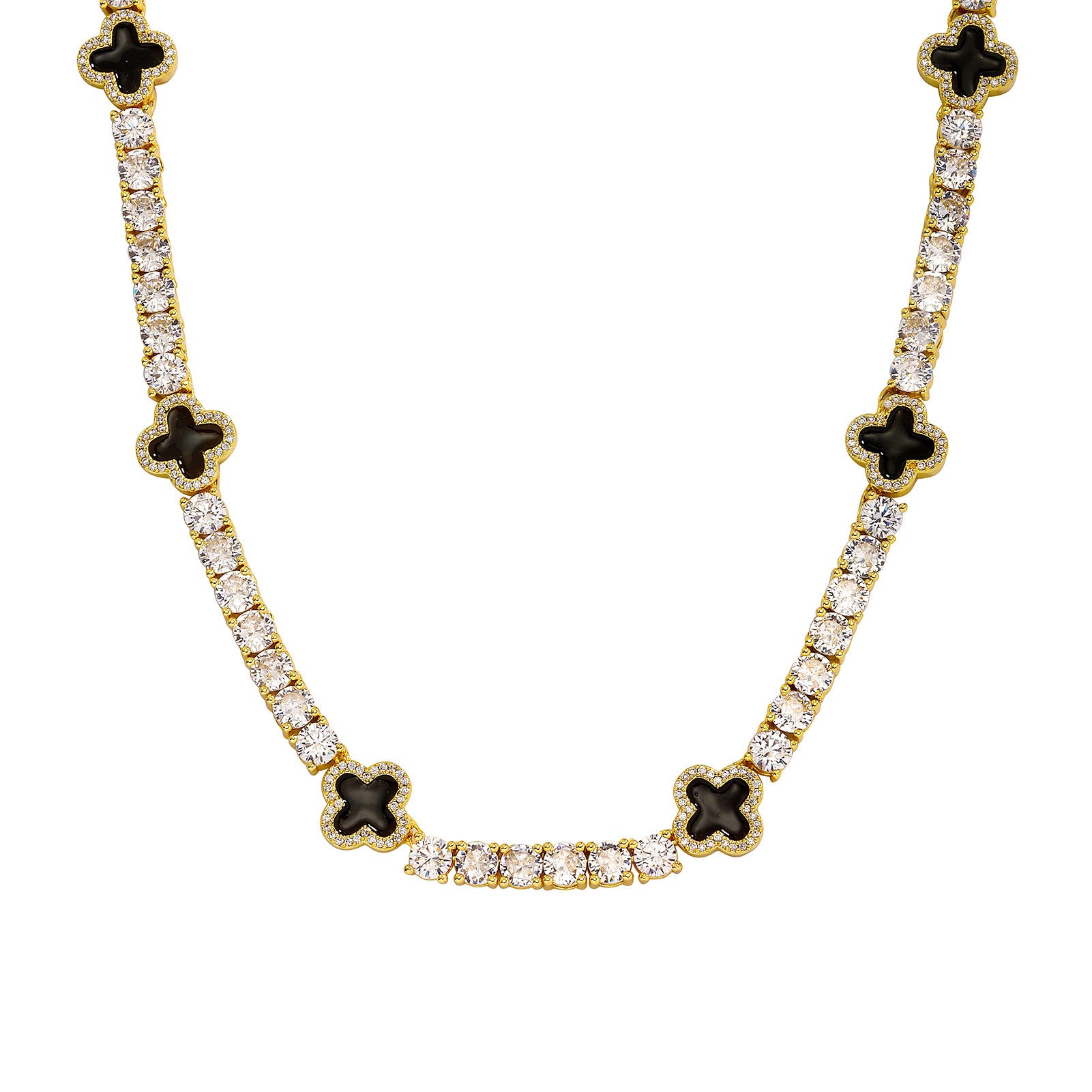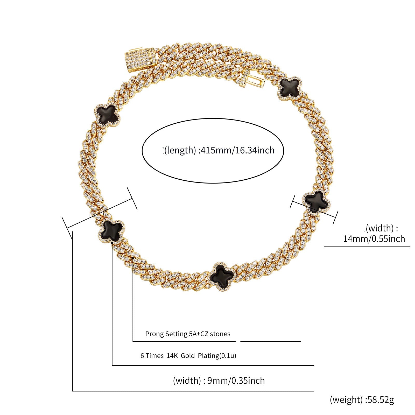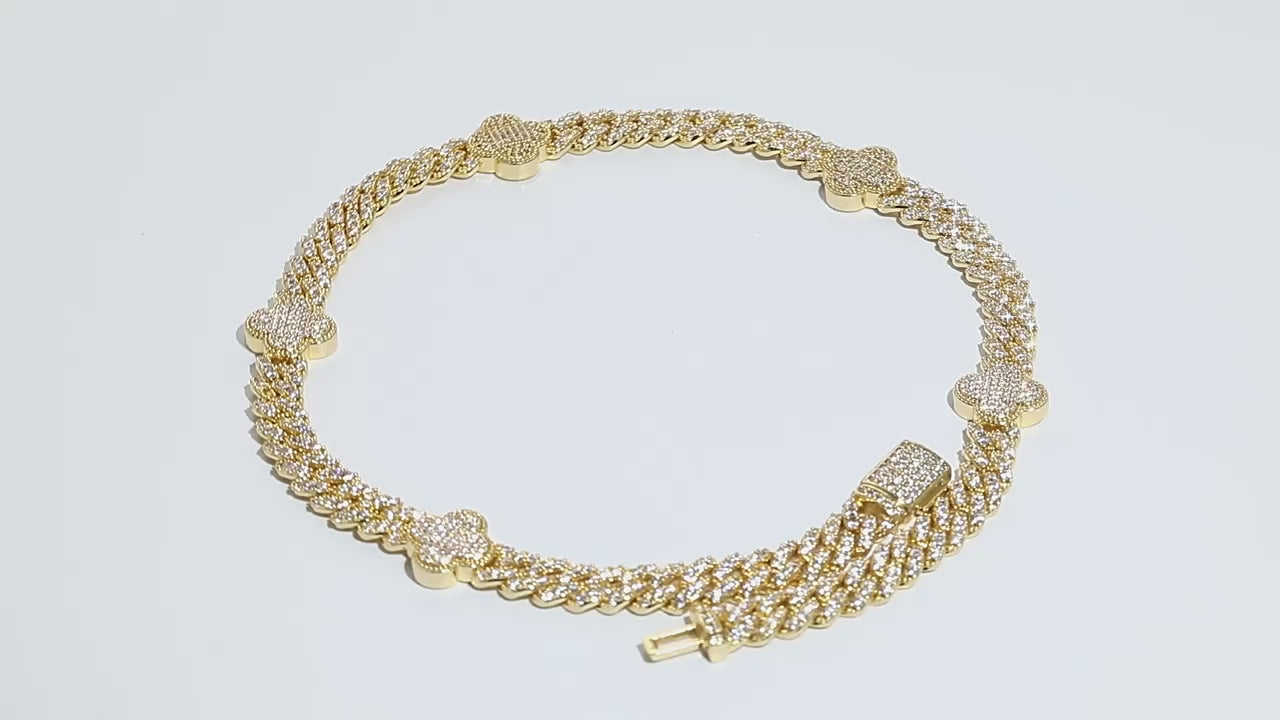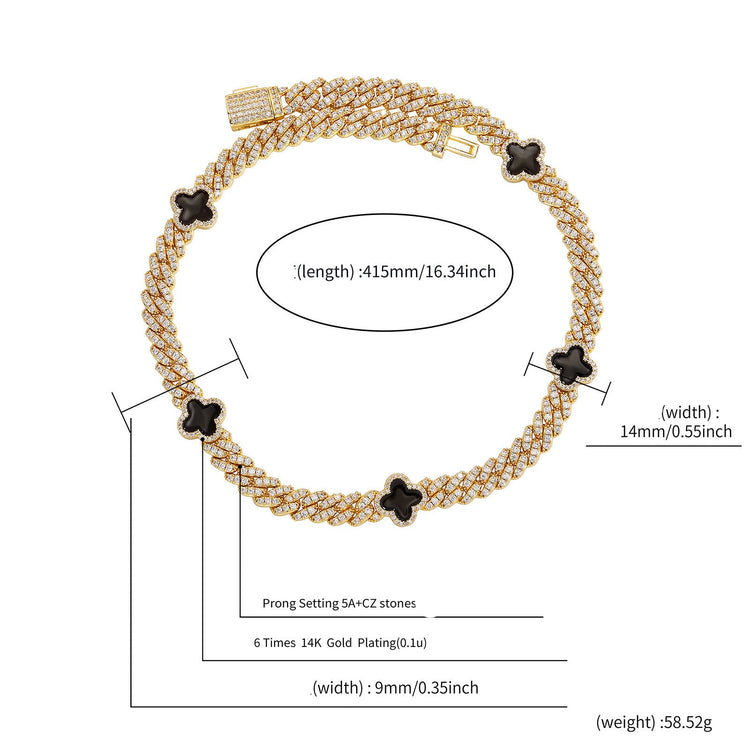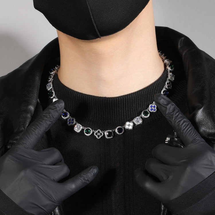 Hip-hop four-leaf clover zircon chain, tennis chain.