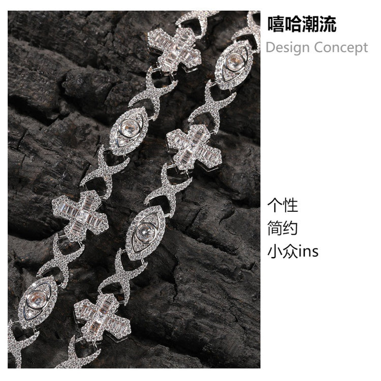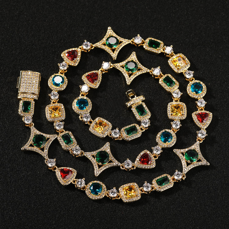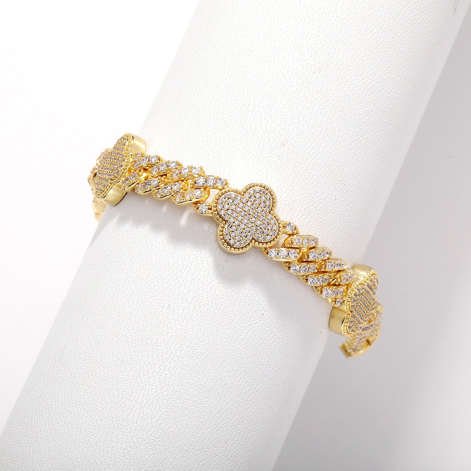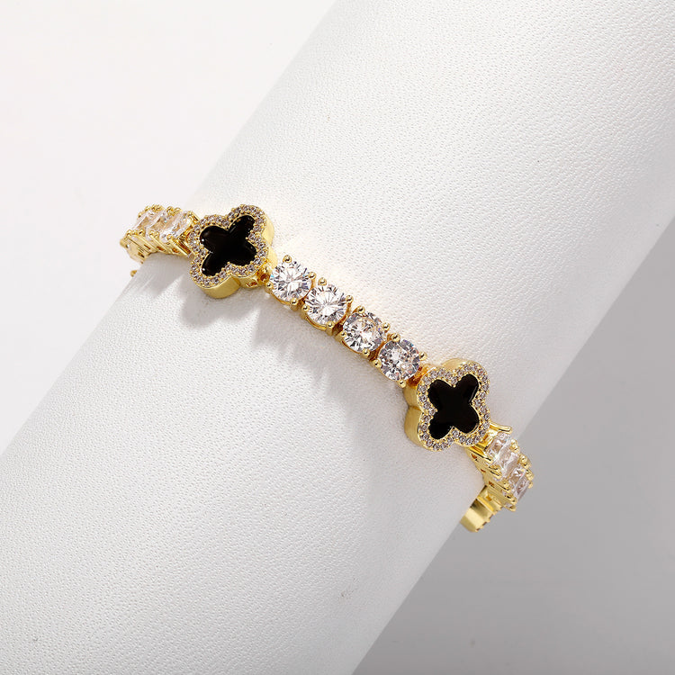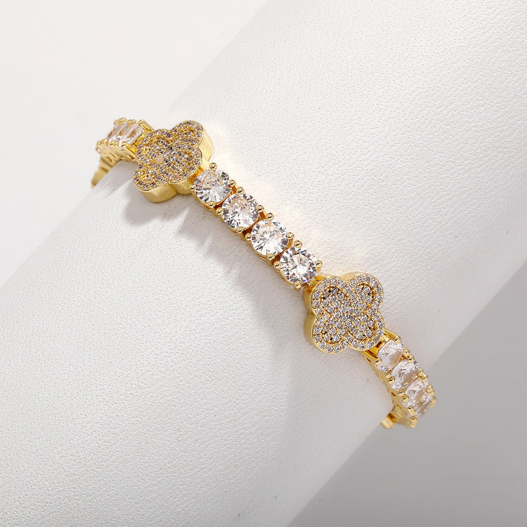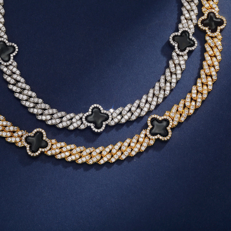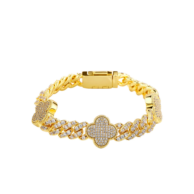 Hip-hop four-leaf clover zircon chain, tennis chain.