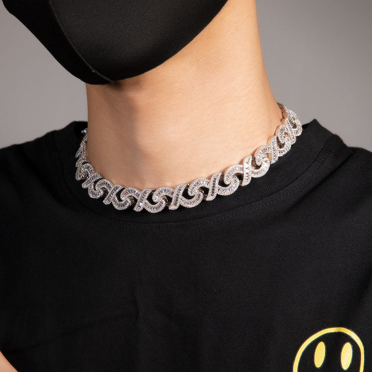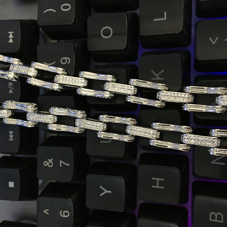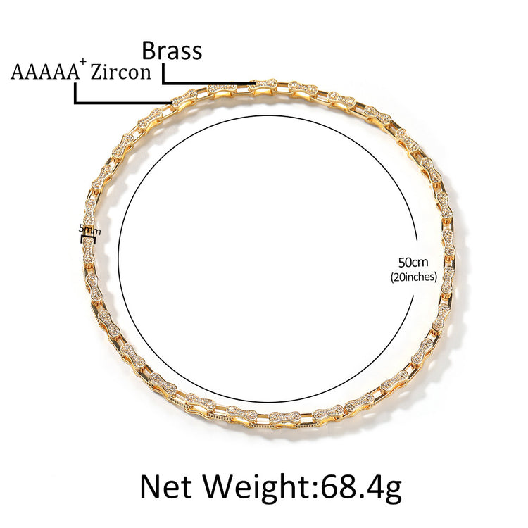 Hip Hop Rhinestone 5mm Bicycle Chain Necklace