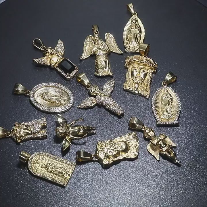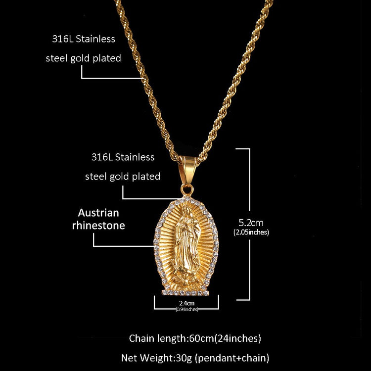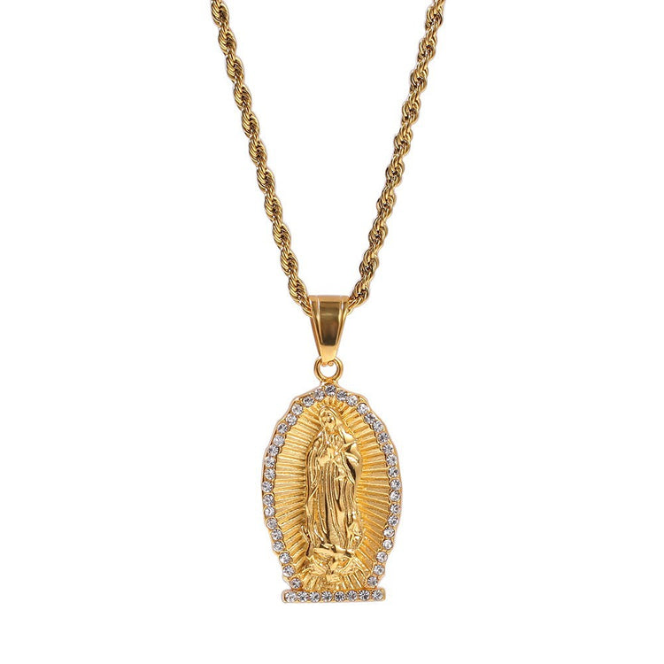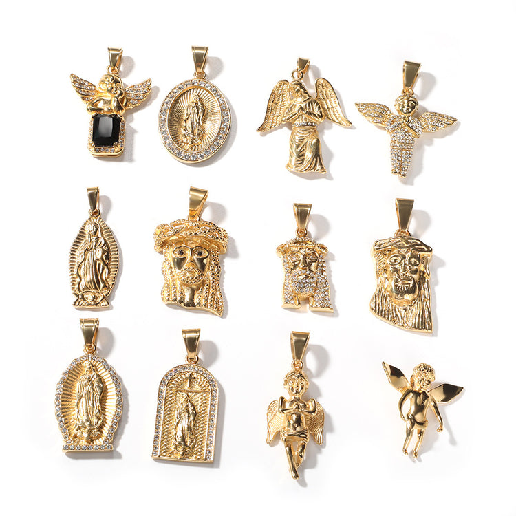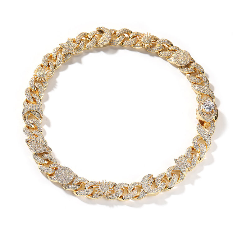 Hip-hop zircon-encrusted sun, star and eye necklace