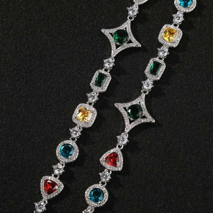 Exquisite diamond-encrusted colored gemstone bracelet and necklace