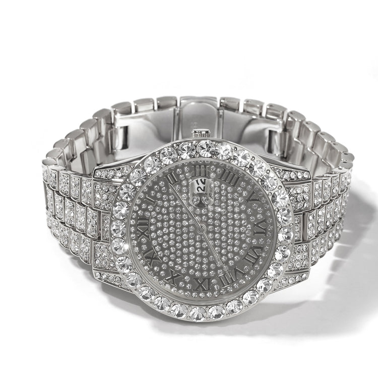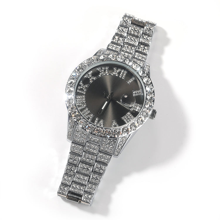 Hip-hop watch with Roman numerals and diamonds, large dial