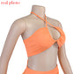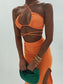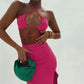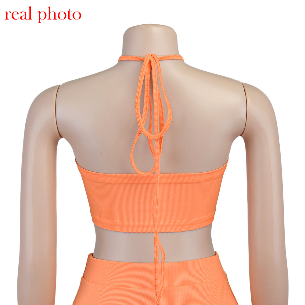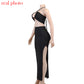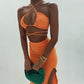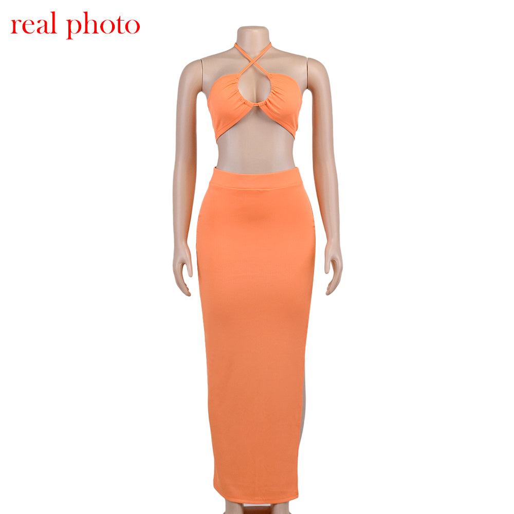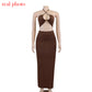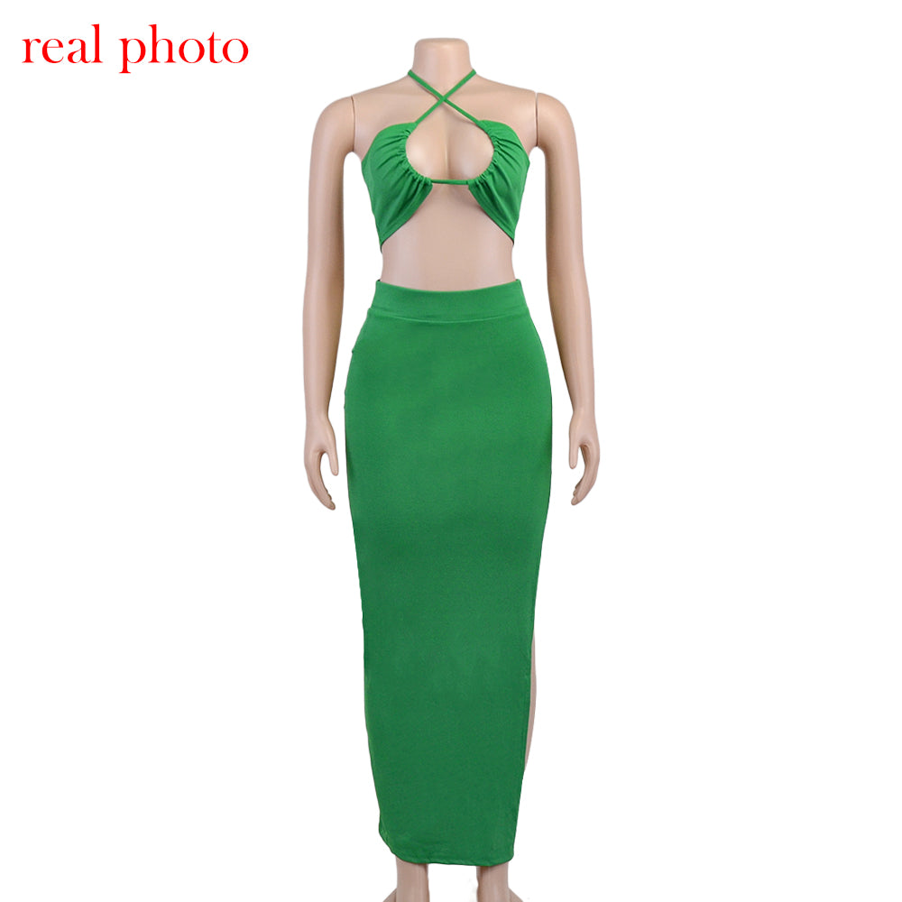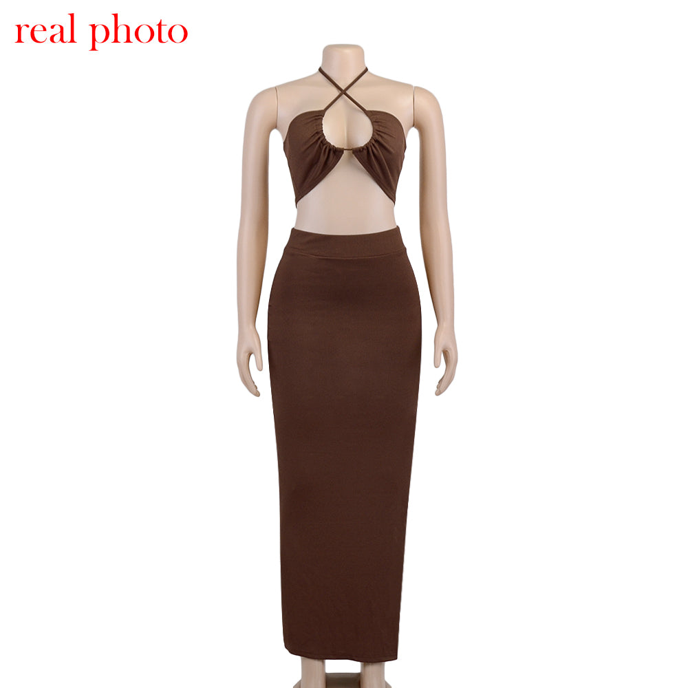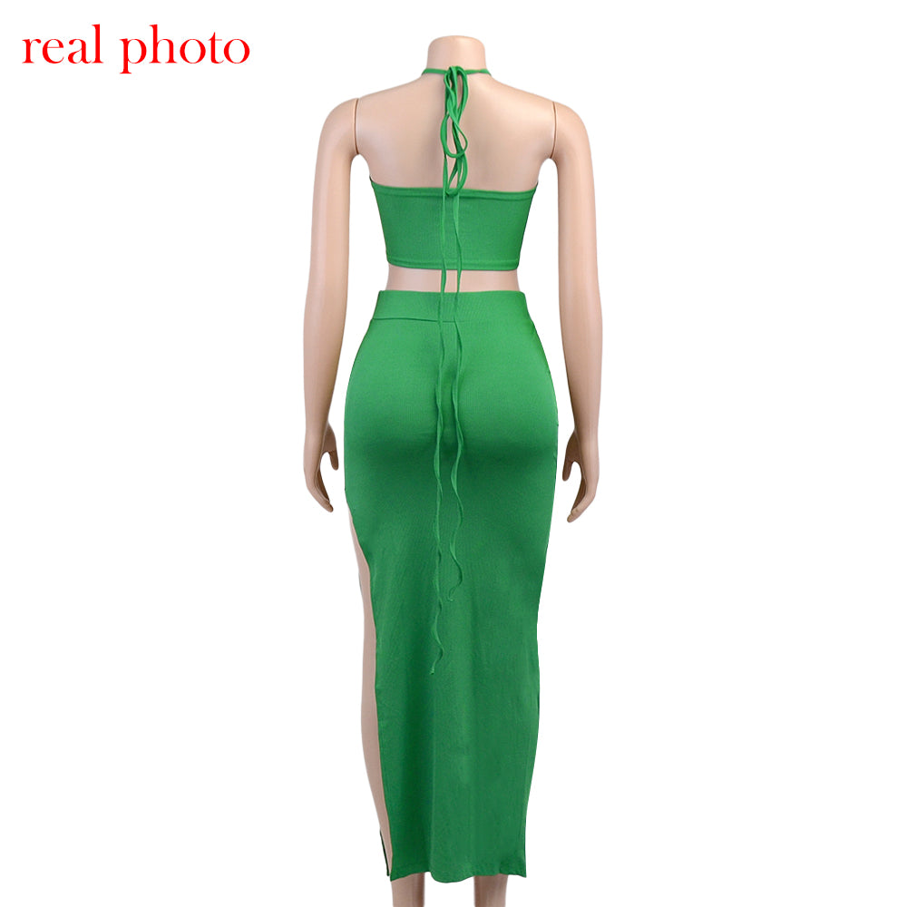 Cryptographic Bandage Cut Out Sexy Halter Neck Top and Skirts Set Gathered Elegant